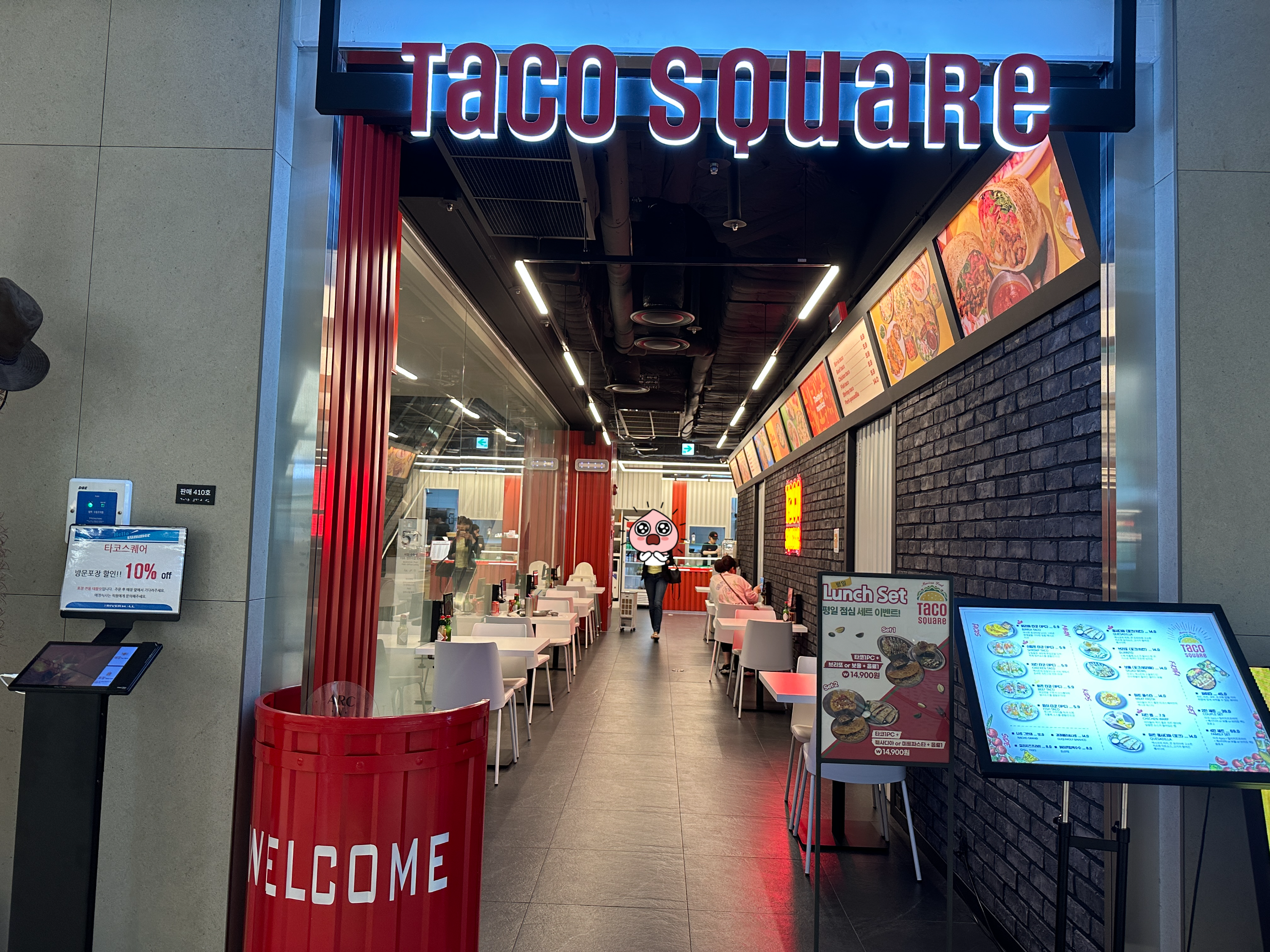 이케아를 둘러보고 타코를 먹으러 갔다. 타코스퀘어는 이케아가 있는 강동아이파크더리버 건물 4층에 있다. 4층에는 타코스퀘어 외에도 국밥집, 빕스, 아웃백 등 외식할 장소가 무척 많았다. 올리브영, 탑텐, 에잇세컨즈, 이케아, 이마트 식품 전용 매장, 모던하우스 등 쇼핑 매장도 많아서 하루 종일 머물러도 볼거리, 먹을 거리가 질리지 않을 듯.