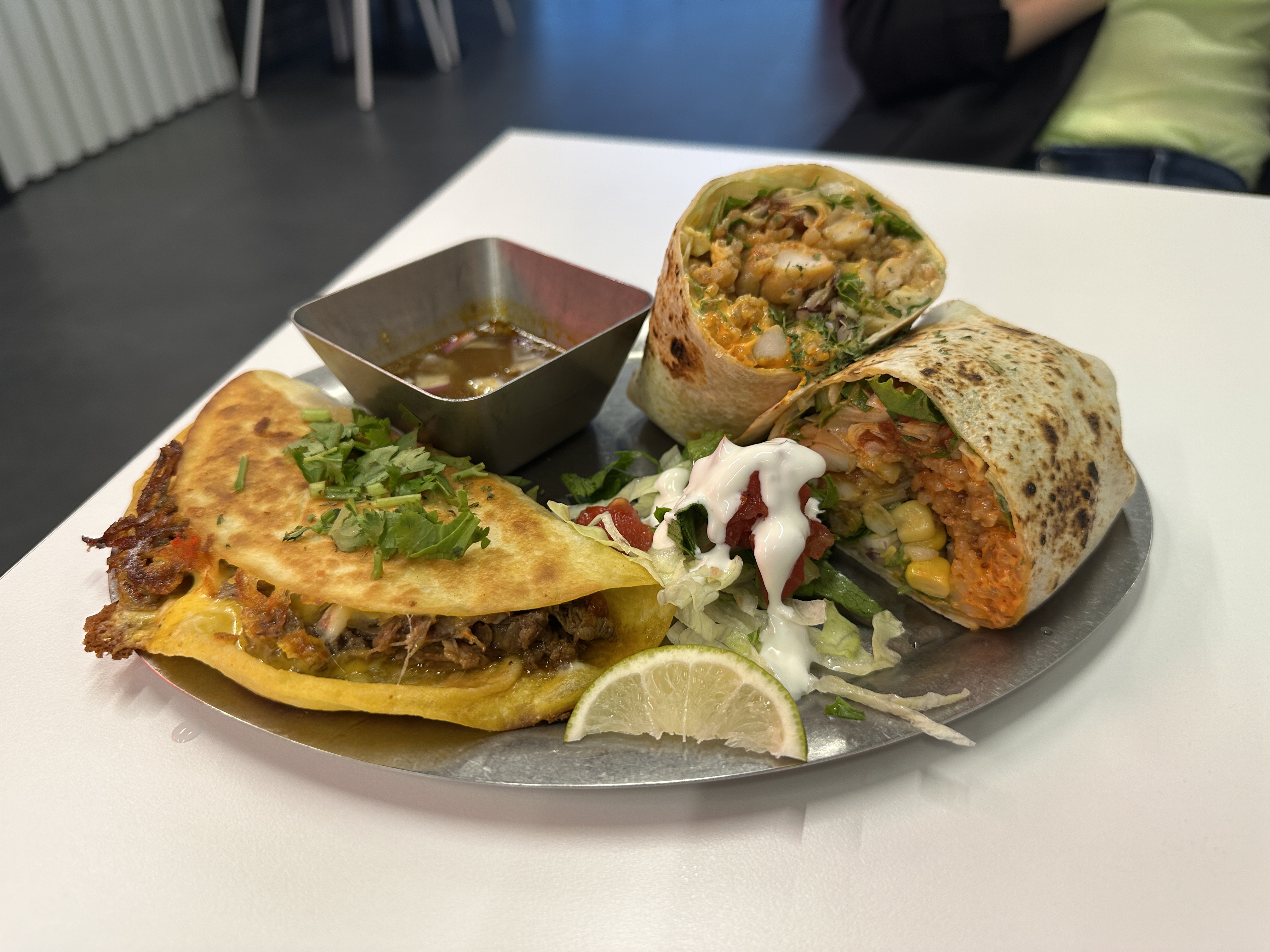 친구는 비리아타코를 대만족이라며 맛있게 먹었다. 브리도 역시 내용물이 꽉 차 양이 많아보였다. 테이블에 타바스코 핫소스와 그린페퍼소스가 비치되어 있는데 뿌려먹어도 맛있다.