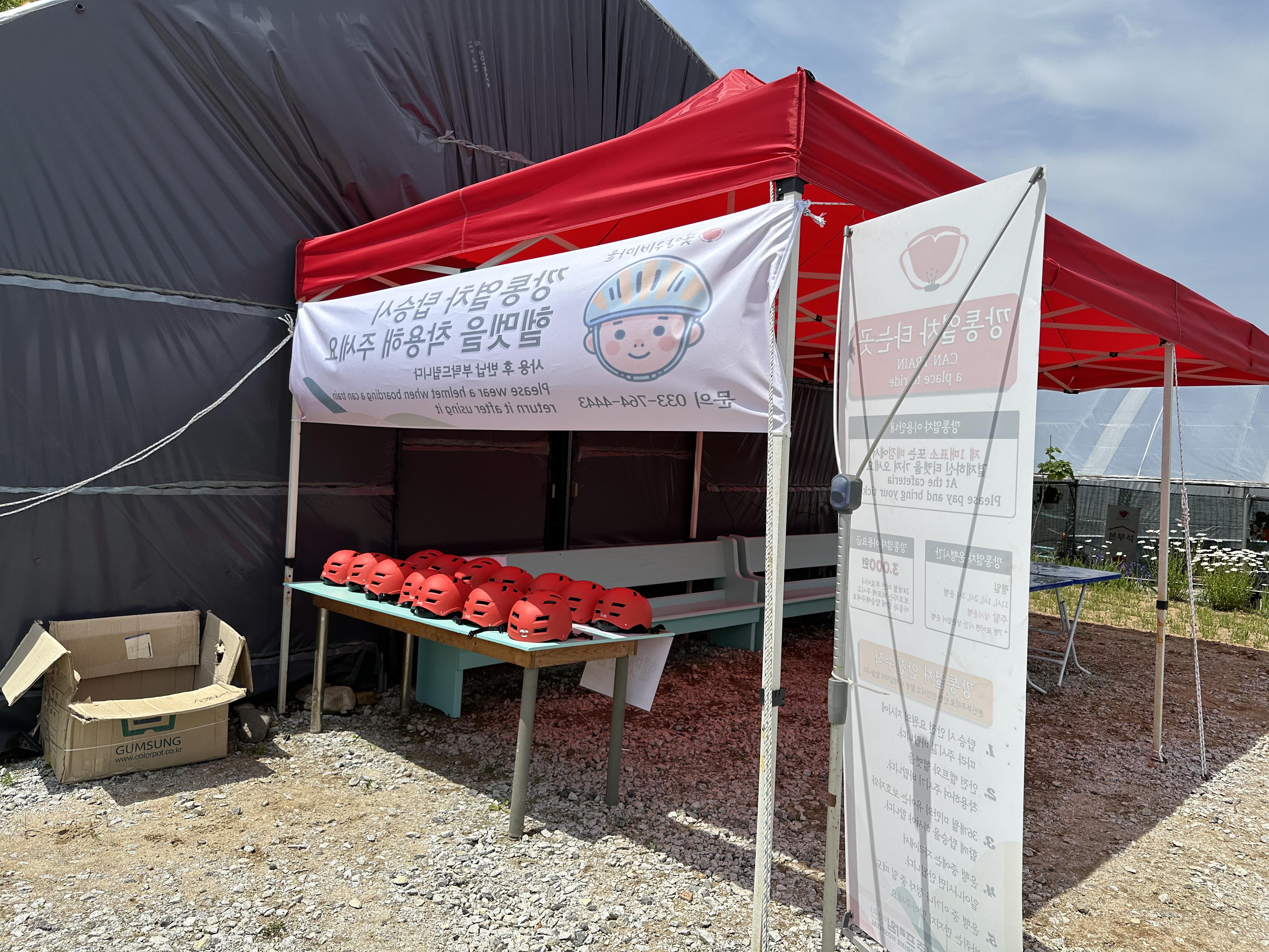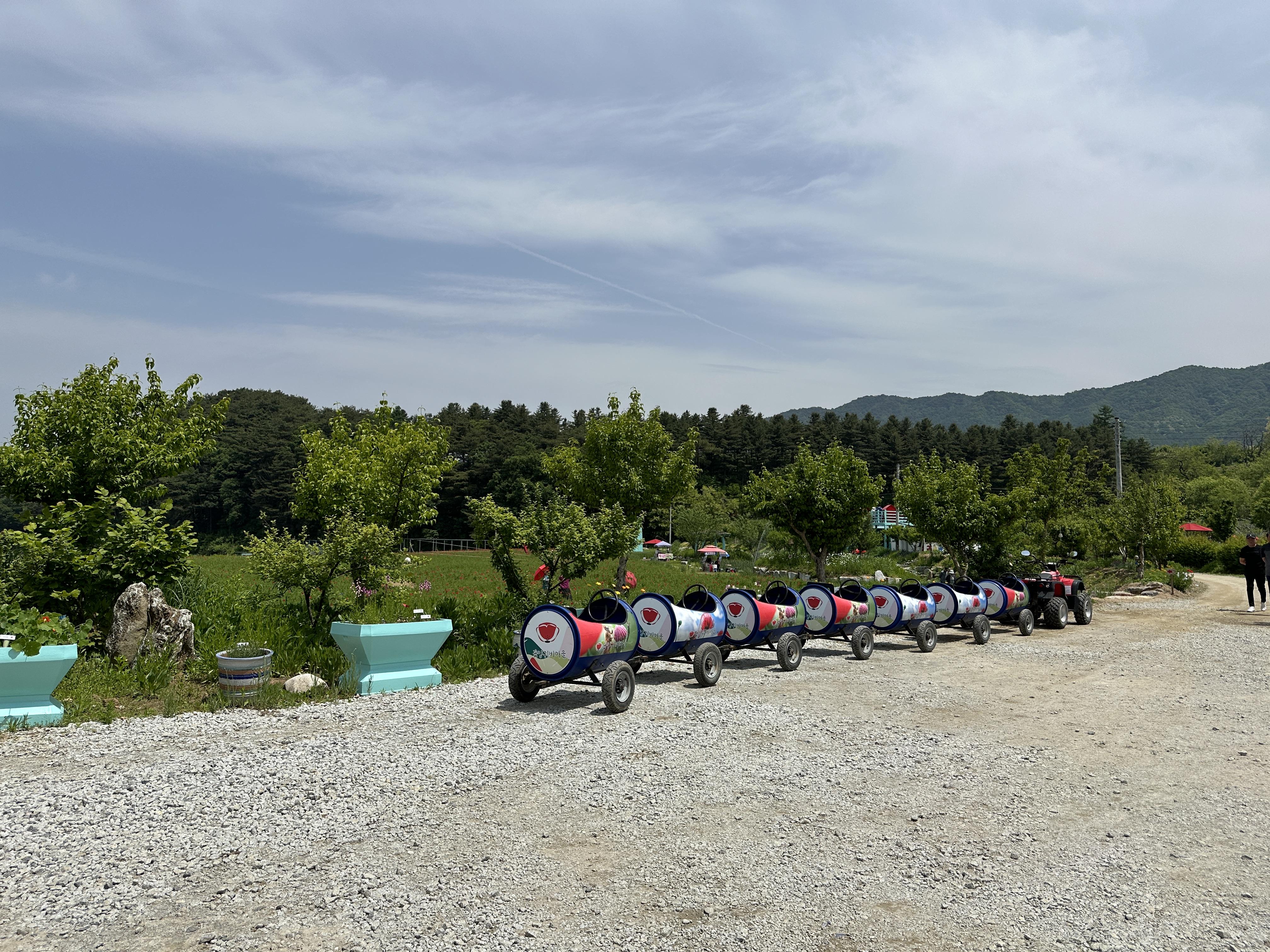 꽃양귀비 축제에서 여러 체험이 가능했는데요. 가장 대표적인 것이 깡통열차 탑승입니다. 비용은 3,000원인데요. 관람권을 구매하는 키오스크에서 함께 구입이 가능합니다. 입구 오른쪽 깡통열차 승차장에서 열차를 타고 양귀비정원을 관람할 수 있습니다. 깡통열차 탑승 시 비치되어 있는 헬멧을 꼭 써야 하는데요, 깡통열차 굉장히 속도가 빠르더라고요. 깡통열차 운전은 동네 이장님이 하십니다.