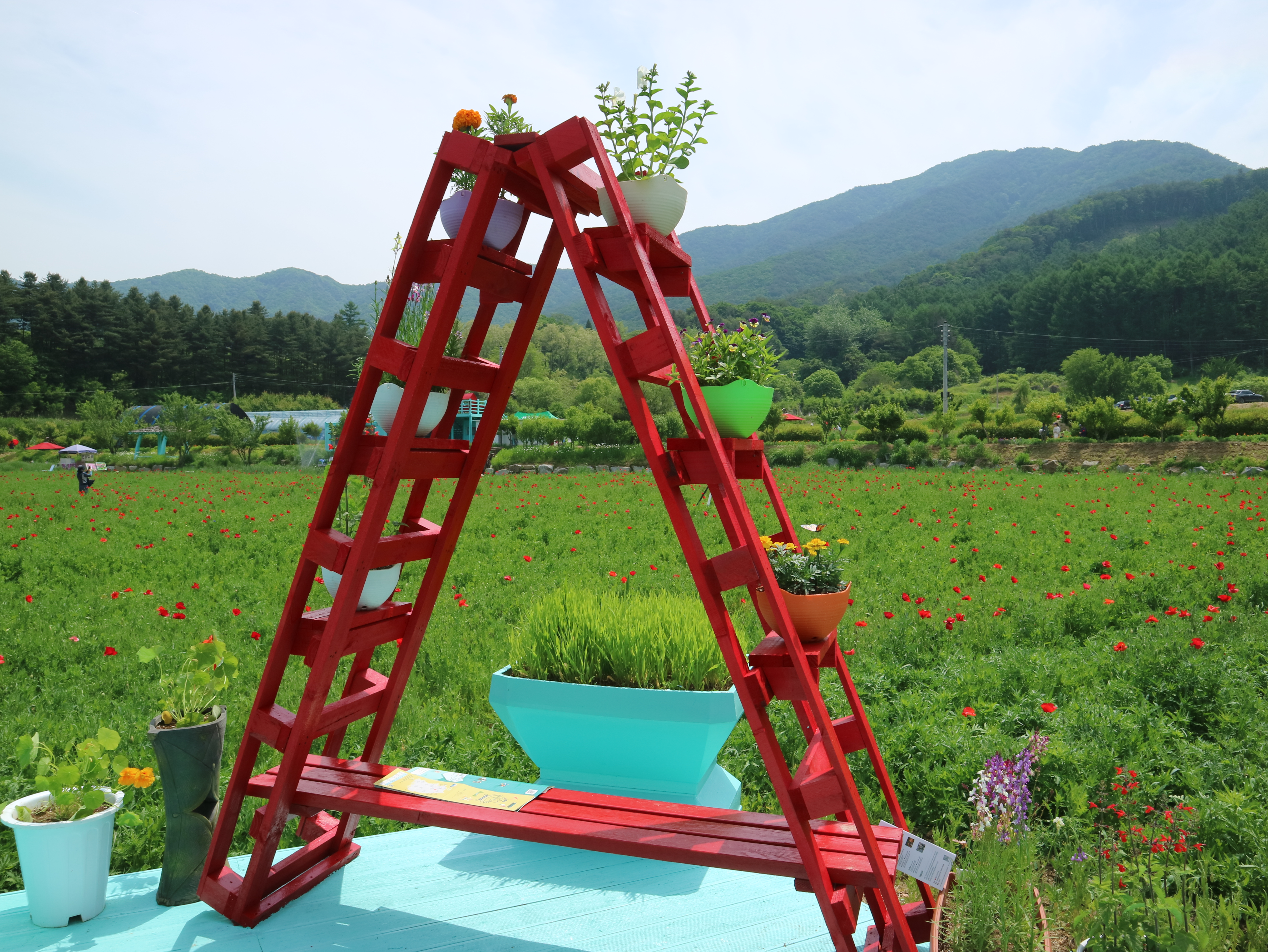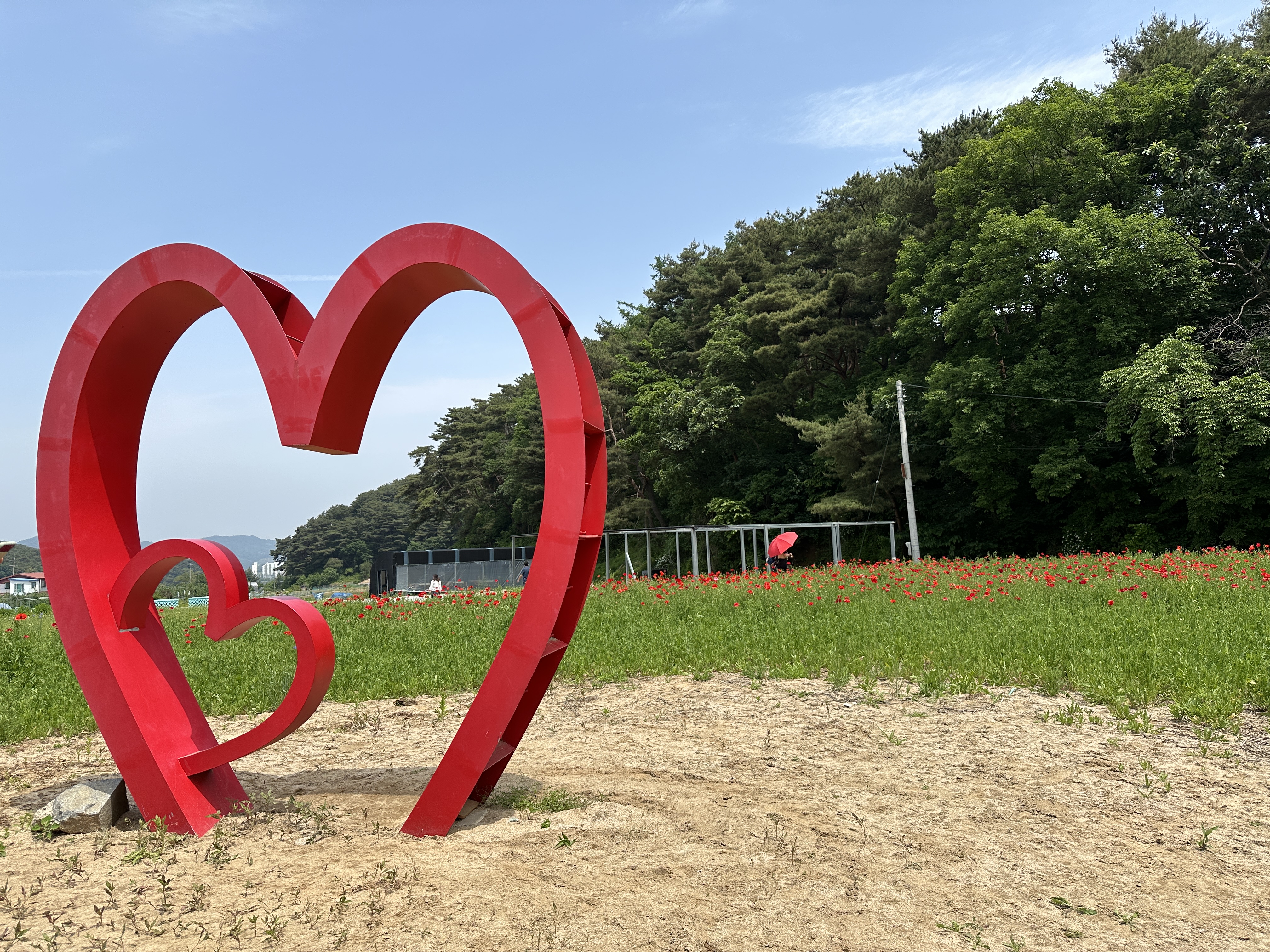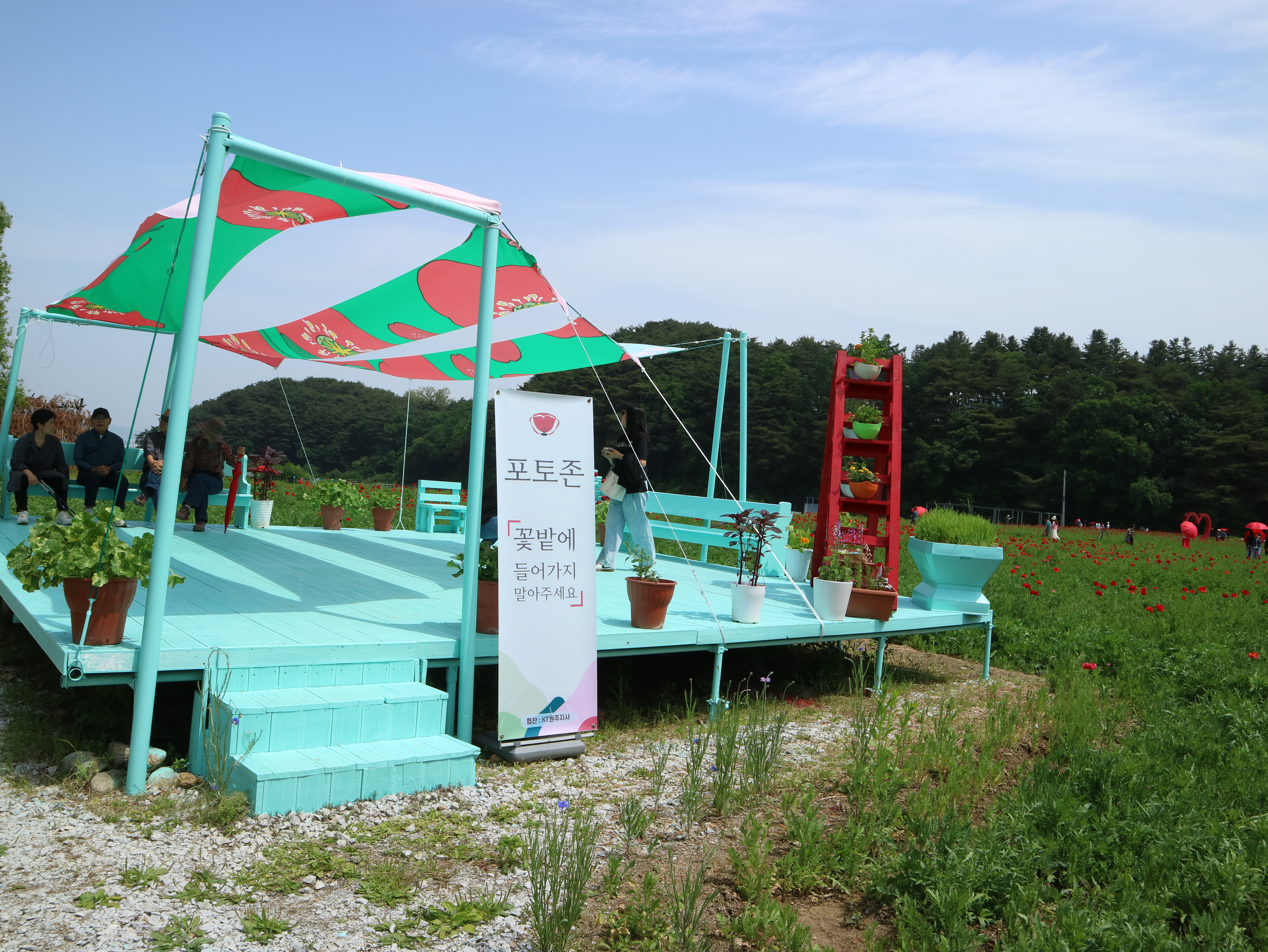꽃양귀비 축제장 안에는 인증 사진을 찍을 수 있는 조형물들이 곳곳에 설치되어 있었습니다. 양귀비정원을 한눈에 볼 수 있는전망대도 있어서 사진 찍기 좋아하는 분들은 만족스러울 것 같습니다.