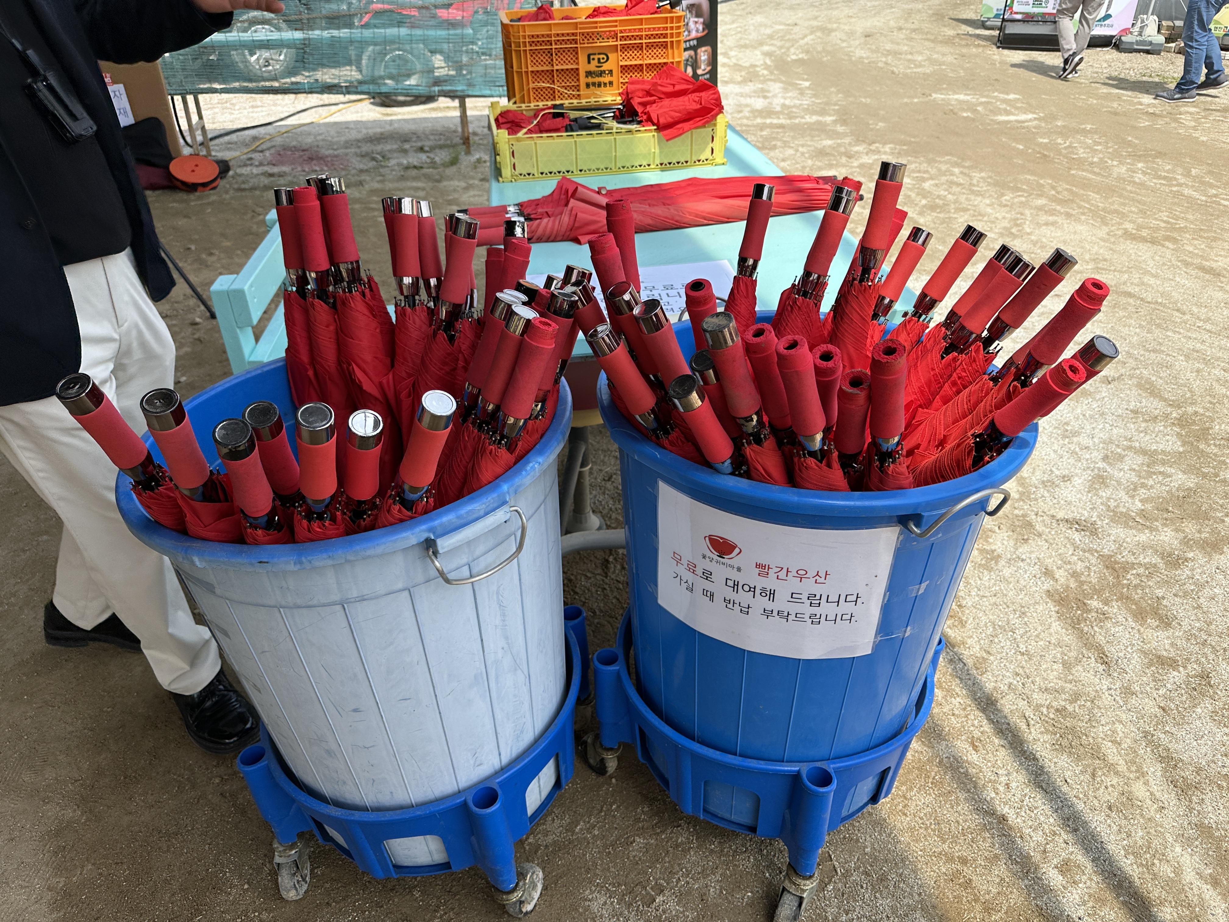 발권한 입장권을 내고 축제장 입구로 가면 빨간색 우산을 무료 대여해줍니다. 빨간 우산은 햇빛을 가릴 수 있을 뿐 아니라 양귀비 꽃밭에서 예쁜 사진을 찍을 수 있는 소품이 되기도 하였습니다. 빨간 장우산 하나를 들고 본격적으로 양귀비정원을 둘러보았습니다.