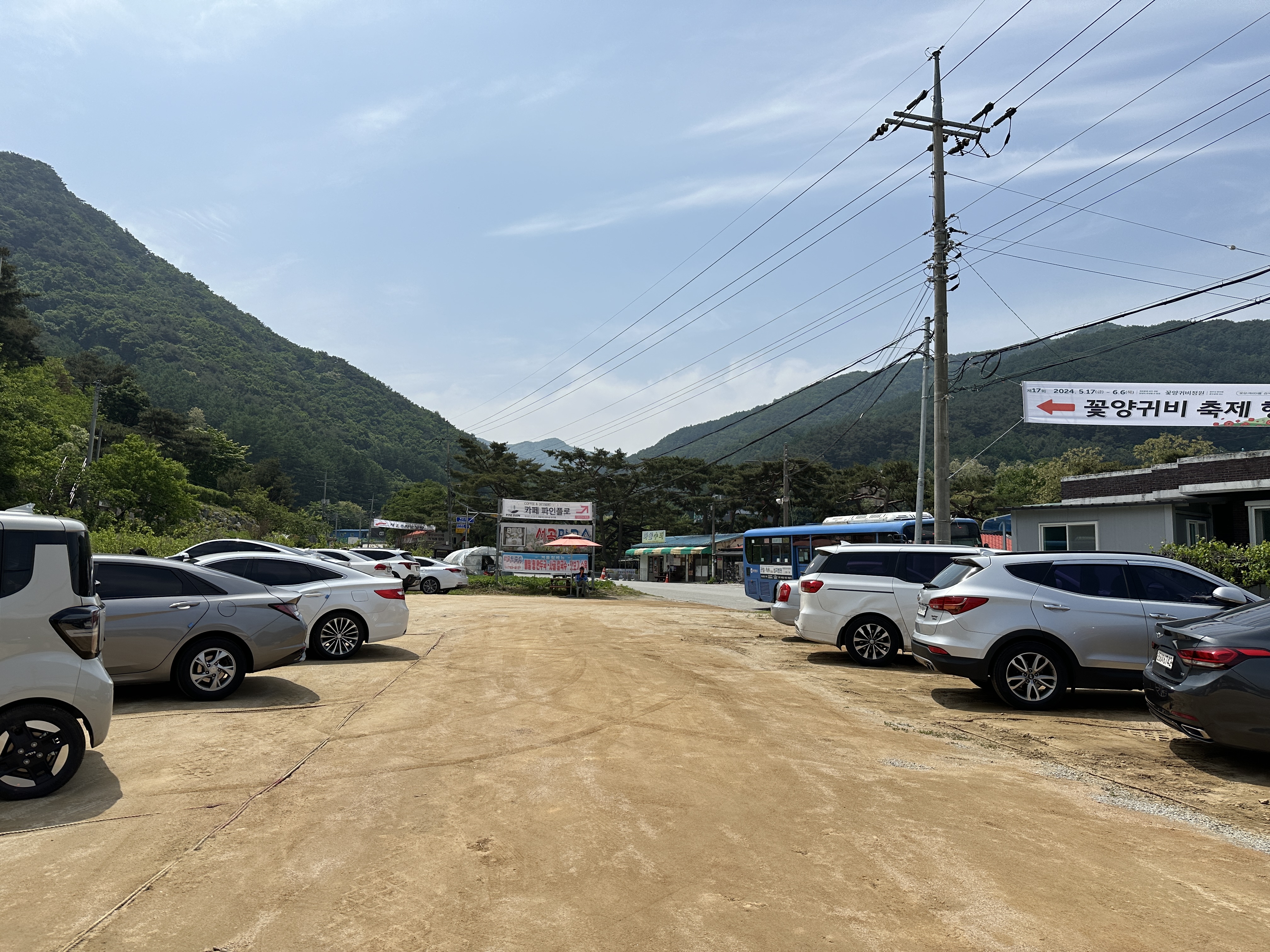 카카오내비게이션에 '원주용수골양귀비축제'로 목적지를 설정하고 출발하였습니다. 서울 강동 기준으로 1시간 20분 소요되었습니다. 축제장 근처에 도착하니 주민과 경찰 등 주차 안내를 하시는 분들이 많아서 쉽게 주차장에 진입 가능했습니다. 축제 첫날이기도 하고 평일이라서 아직 사람이 많지 않은 듯했습니다. 주차장은 제1 주차장과 2 주차장이 있는데 1 주차장이 꽉 차면 2 주차장으로 안내받을 수 있습니다. 저는 1 주차장에 주차하고 입장했습니다. 주차장 안쪽에 용수골 꽃양귀비축제라는 글씨가 크게 쓰인 통로로 들어가면 됩니다.