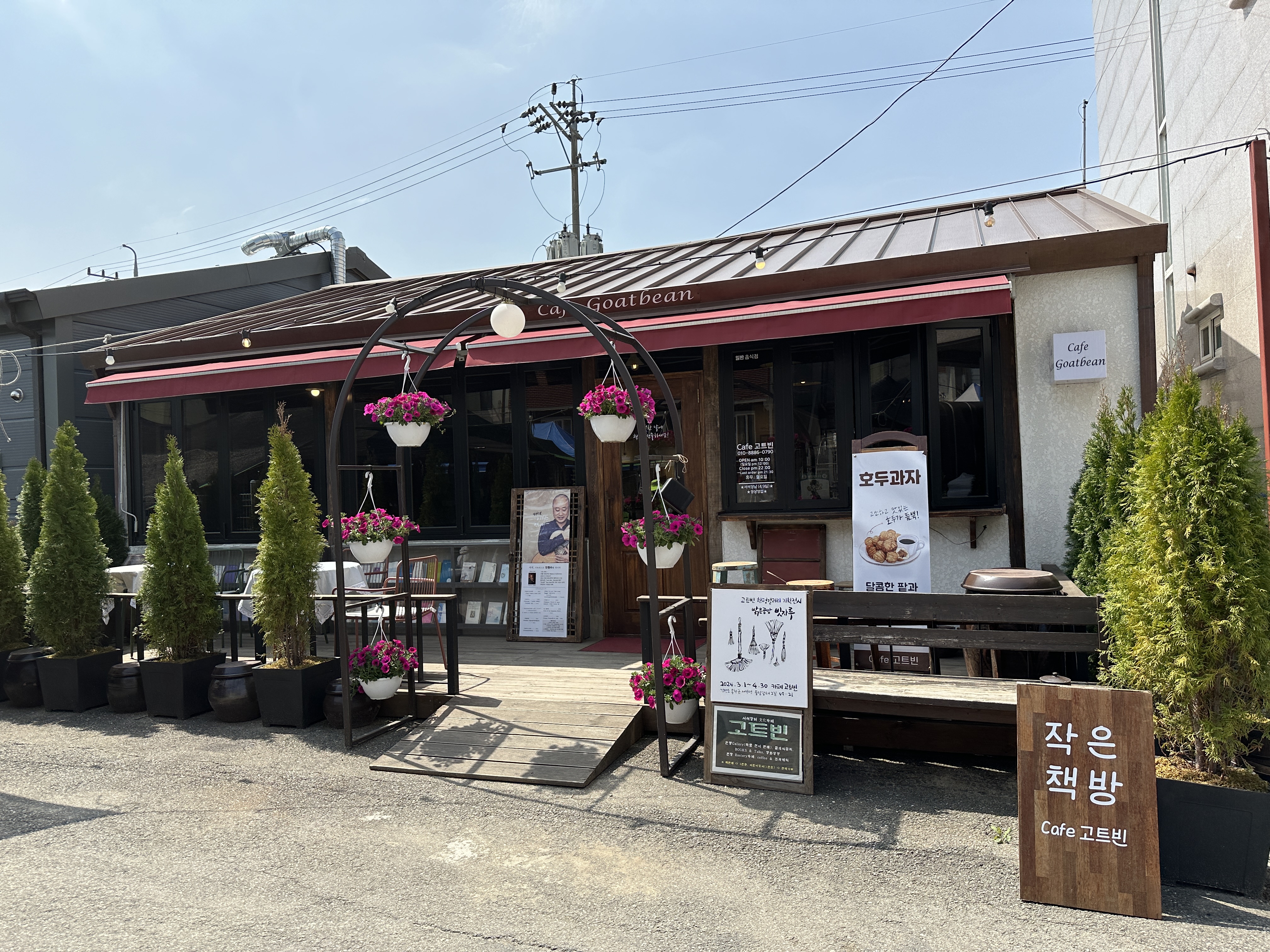 강원도 부모님 댁에 방문하면 서석면을 지나게 된다. 마침 간 날이 서석 5일장이었다. 장터를 둘러보고 들렀던 특별한 카페를 소개해볼까 한다.. 메인 도로를 기준으로 시장 왼쪽 끝에 위치한 '고트빈'이라는 이름의 카페다. 새로운 곳을 방문하고 싶어 검색하다가 카페와 책방을 겸하는 곳이어서 가보고 싶었다.