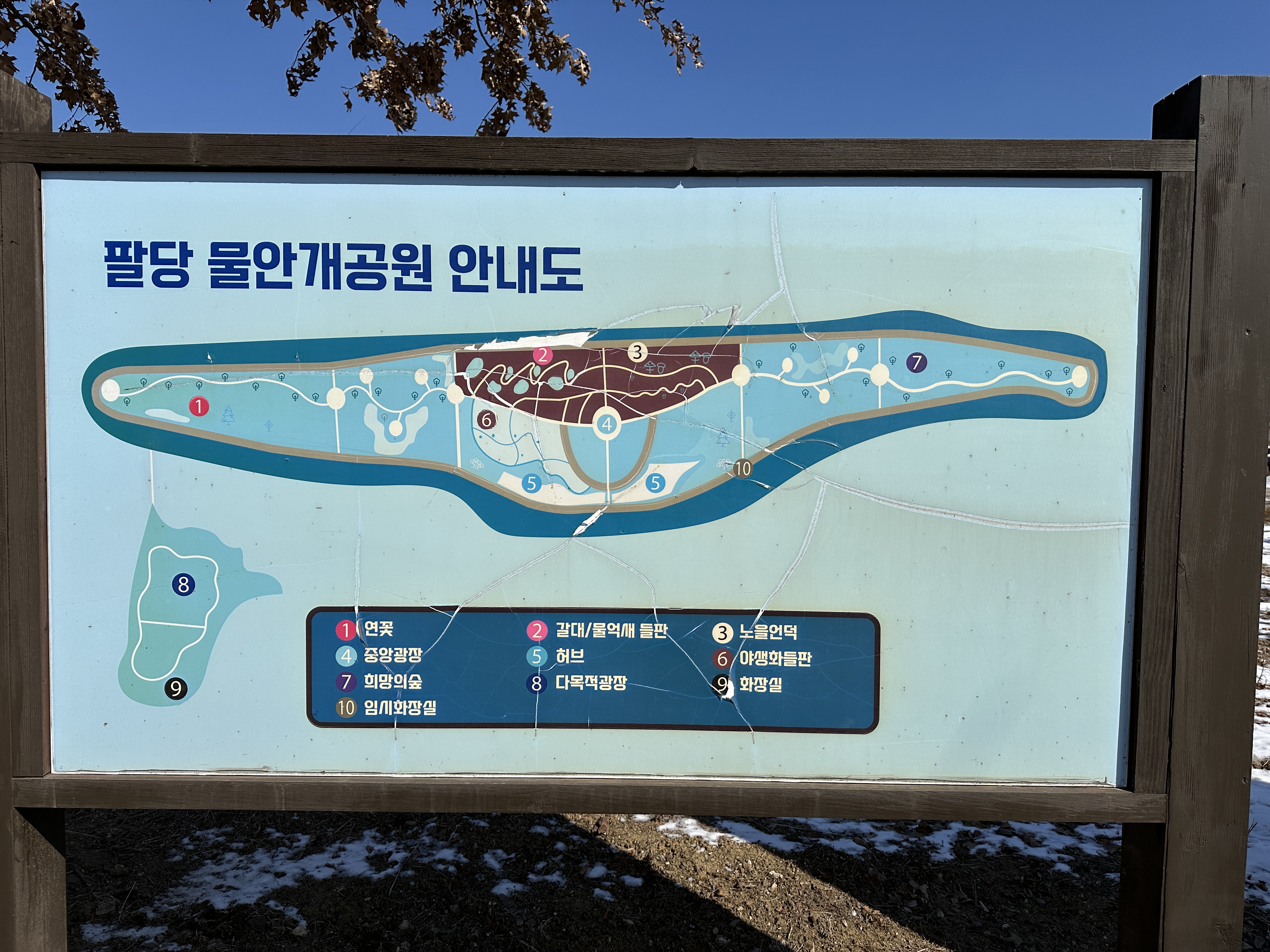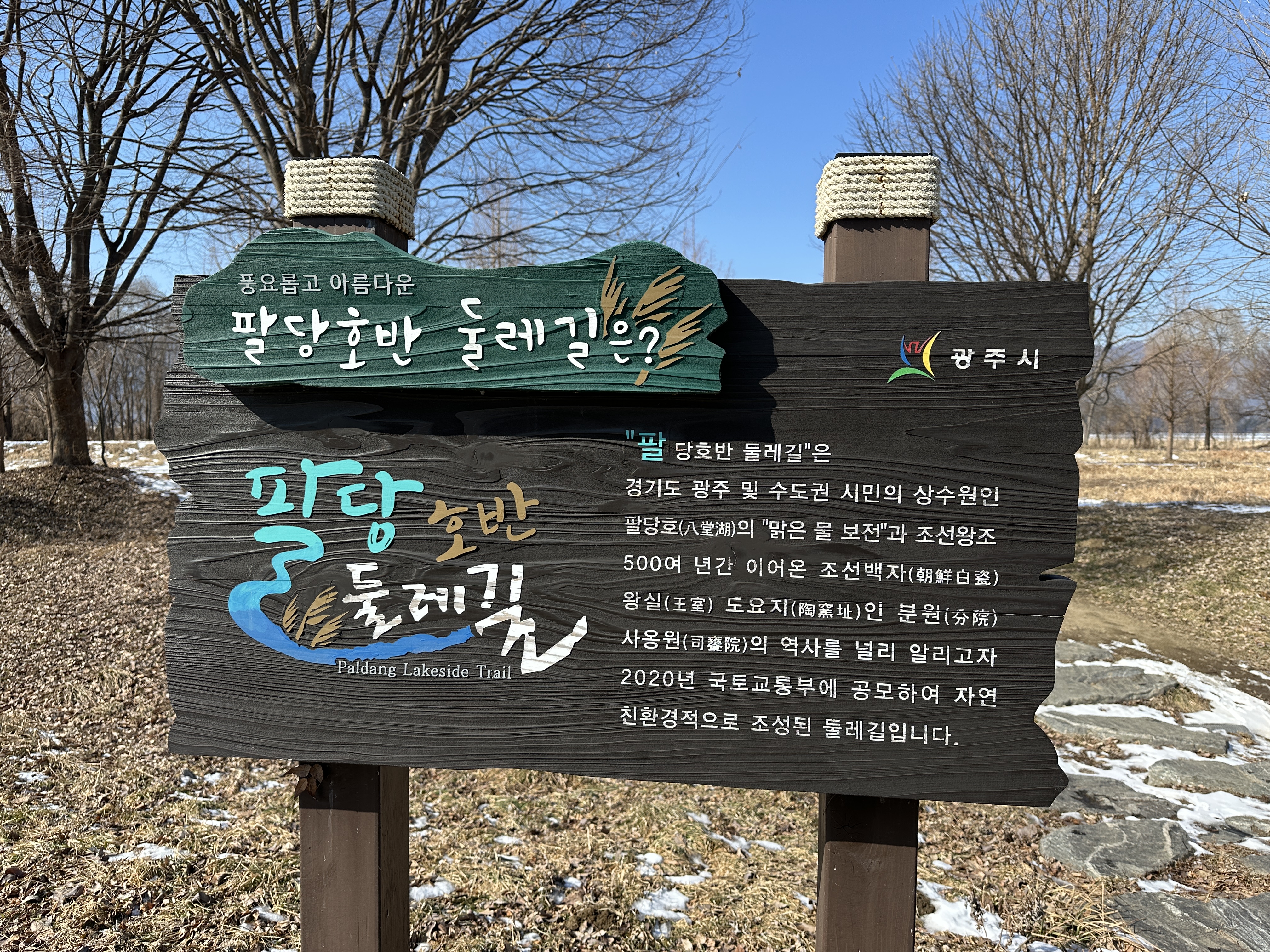 팔당물안개공원 주차장에 주차했다. 주차비는 무료다. 화장실이 입구와 공원 안에 있는데 공원 안에 있는 화장실은 3월까지 사용 중지 중이다. 산책로가 기니 꼭 주차장 입구에 있는 화장실에 들러야 한다.