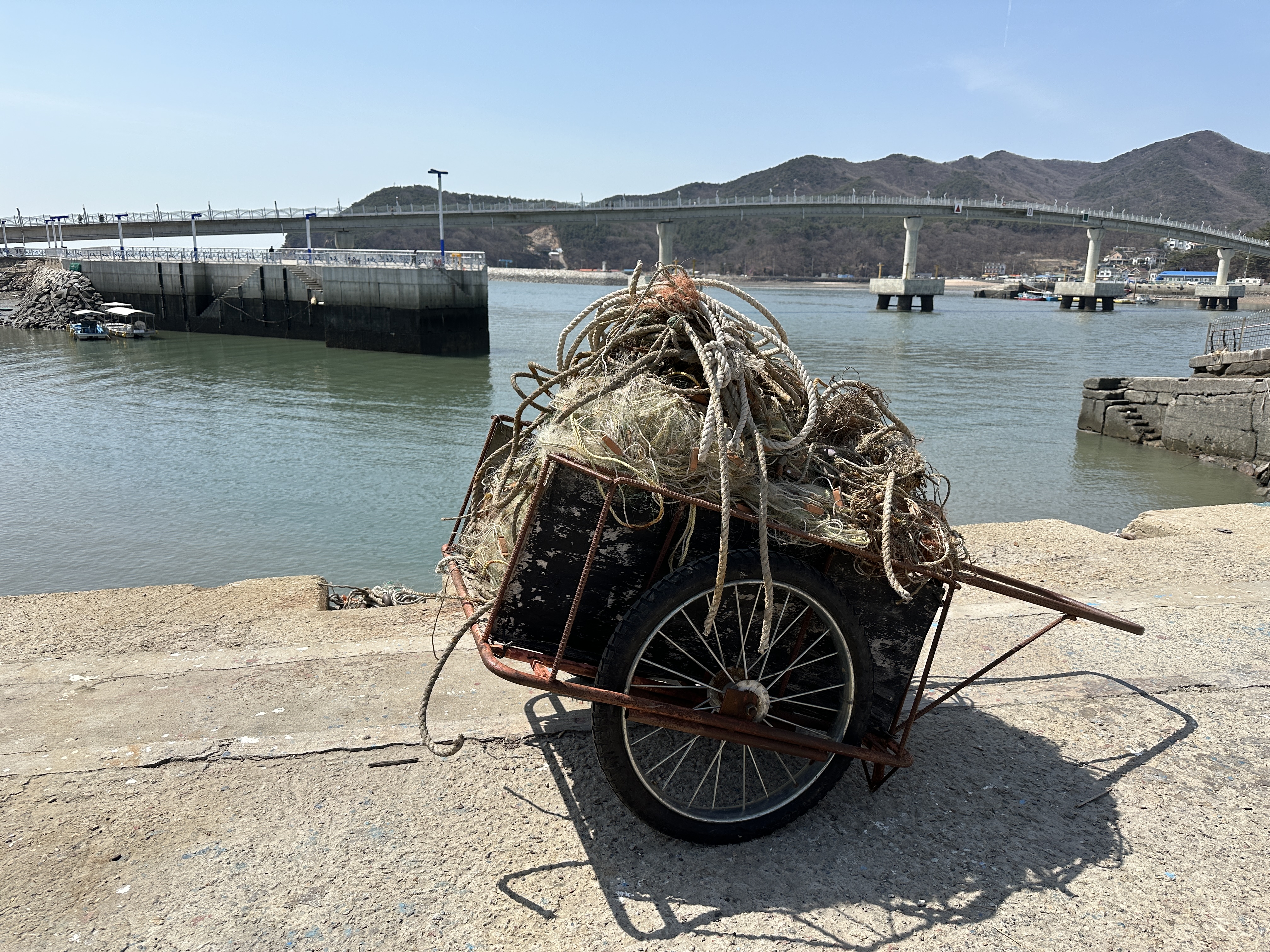 광명항에서 가장 먼저 눈에 띈 것은 생선이었다. 반쯤 마른 생선이 줄에 가지런히 걸려있었다. 도심에 사는 나는 흔히 볼 수 없는 풍경이라 새롭고 인상적이었다.
