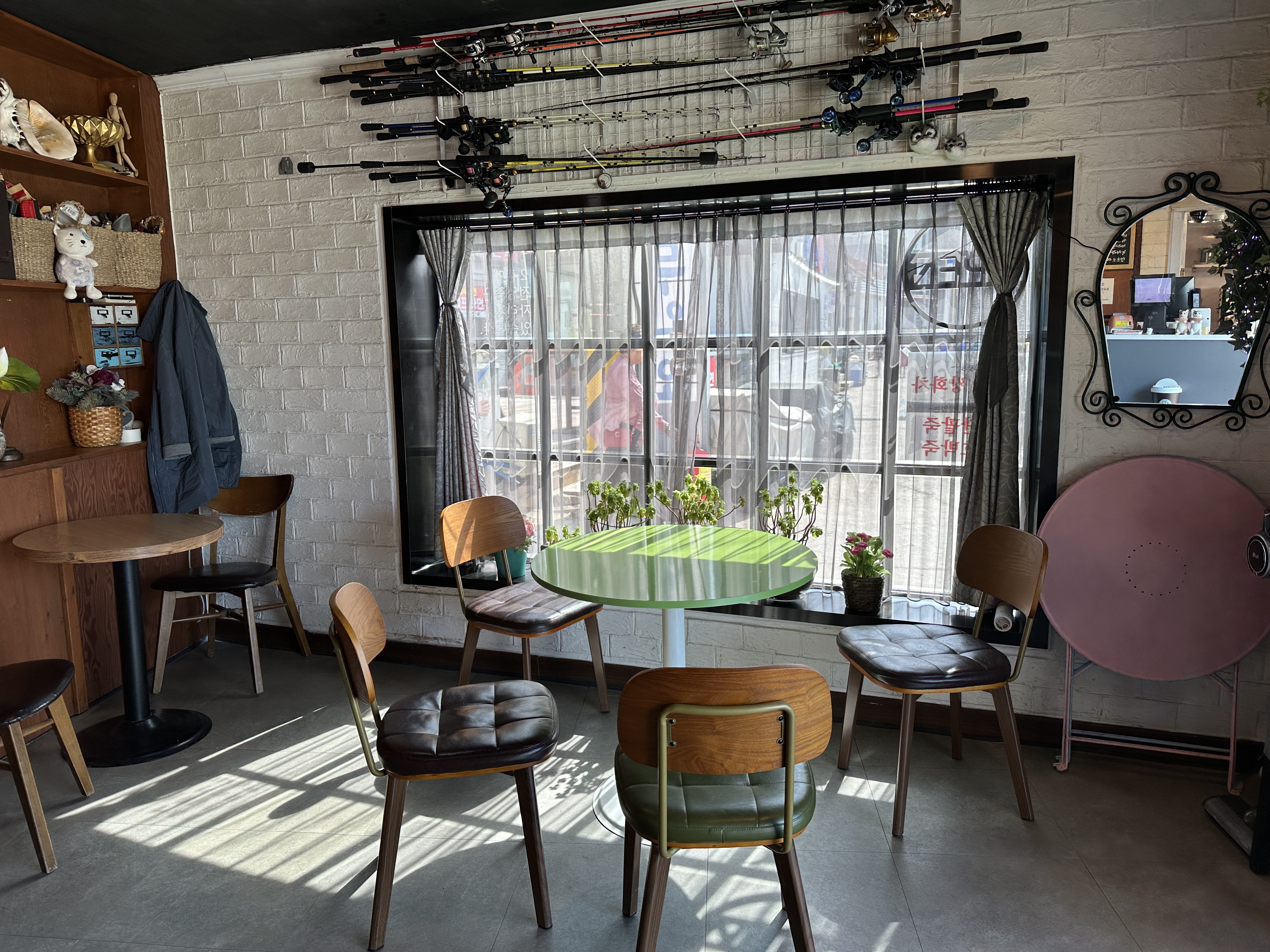 CAFE 떼무리는 1층과 2층, 테라스도 있는데 특히 2층에서 보이는 떼무리항 뷰가 예뻤다. 겉보기에는 그냥 조립식 건물로 보였는데 안으로 들어가니 꽤 아기자기하고 아늑했다. 여러 차 종류와 커피류, 빙수 등을 판매한다. 계란을 동동 띄운 쌍화차가 이곳의 시그니처 음료였다. 1층 카운터에서 쌍화차 한 잔을 주문하고 2층으로 올라갔다. 2층은 통창이 있는 넓은 실내와 반대쪽 주택가 뷰 테라스가 있었다.