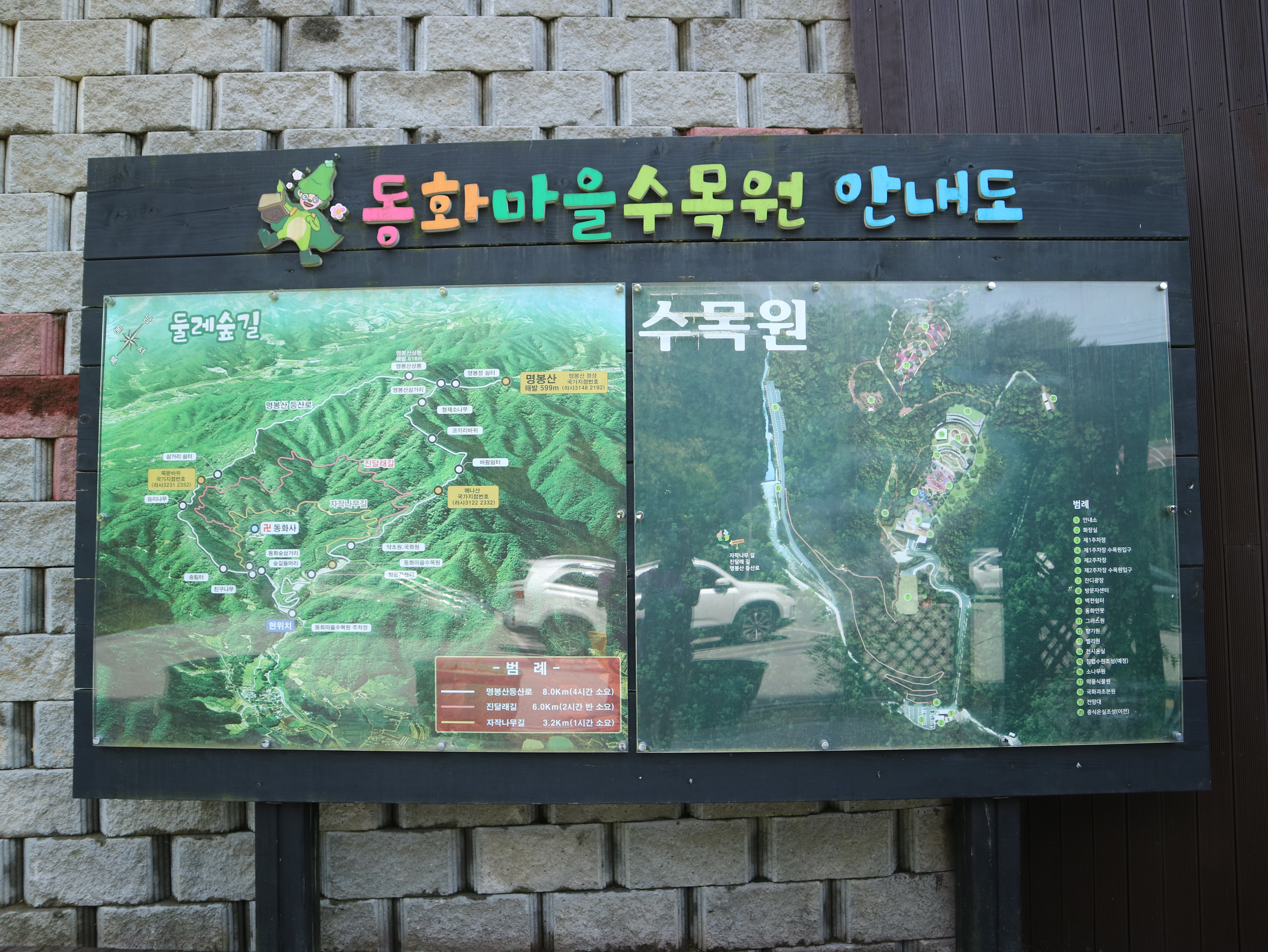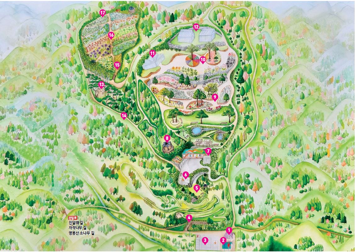 수목원 입구 주차장에 주차를 하고 안내도를 보고 깜짝 놀랐다. 생각했던 것보다 훨씬 큰 규모였고 산 위에 있어서 ‘등산해야 갈 수 있는 곳인가?’ 하는 의문이 들었기 때문이었다.