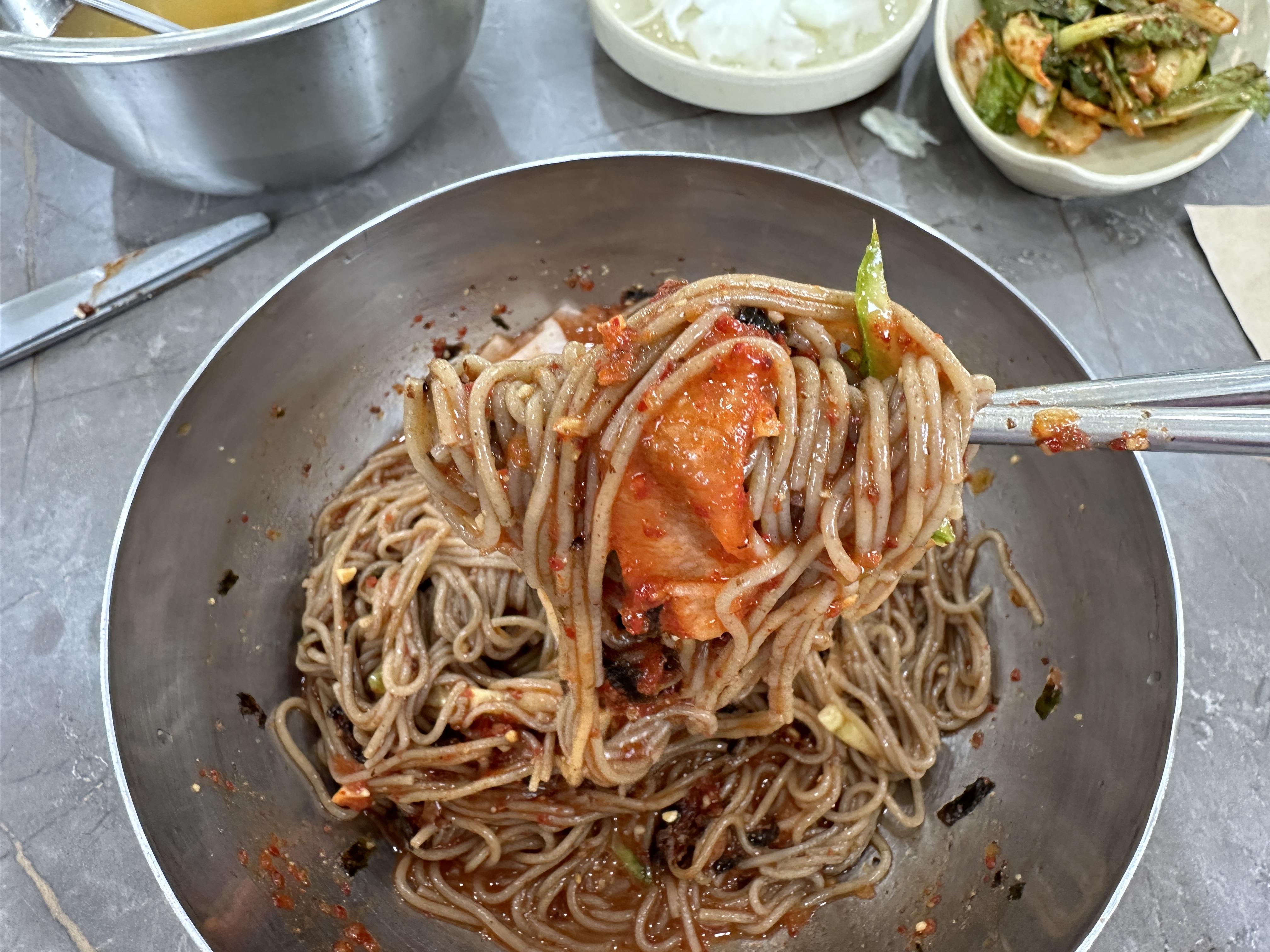 막국수를 다 먹고 계산을 하는데 직원이 물 남았으면 가져가도 된다고 했다. 여기는 물이 생수병으로 나와서 들고 올 수 있어 좋았다. 친절하게 챙겨주어 더 좋았다.