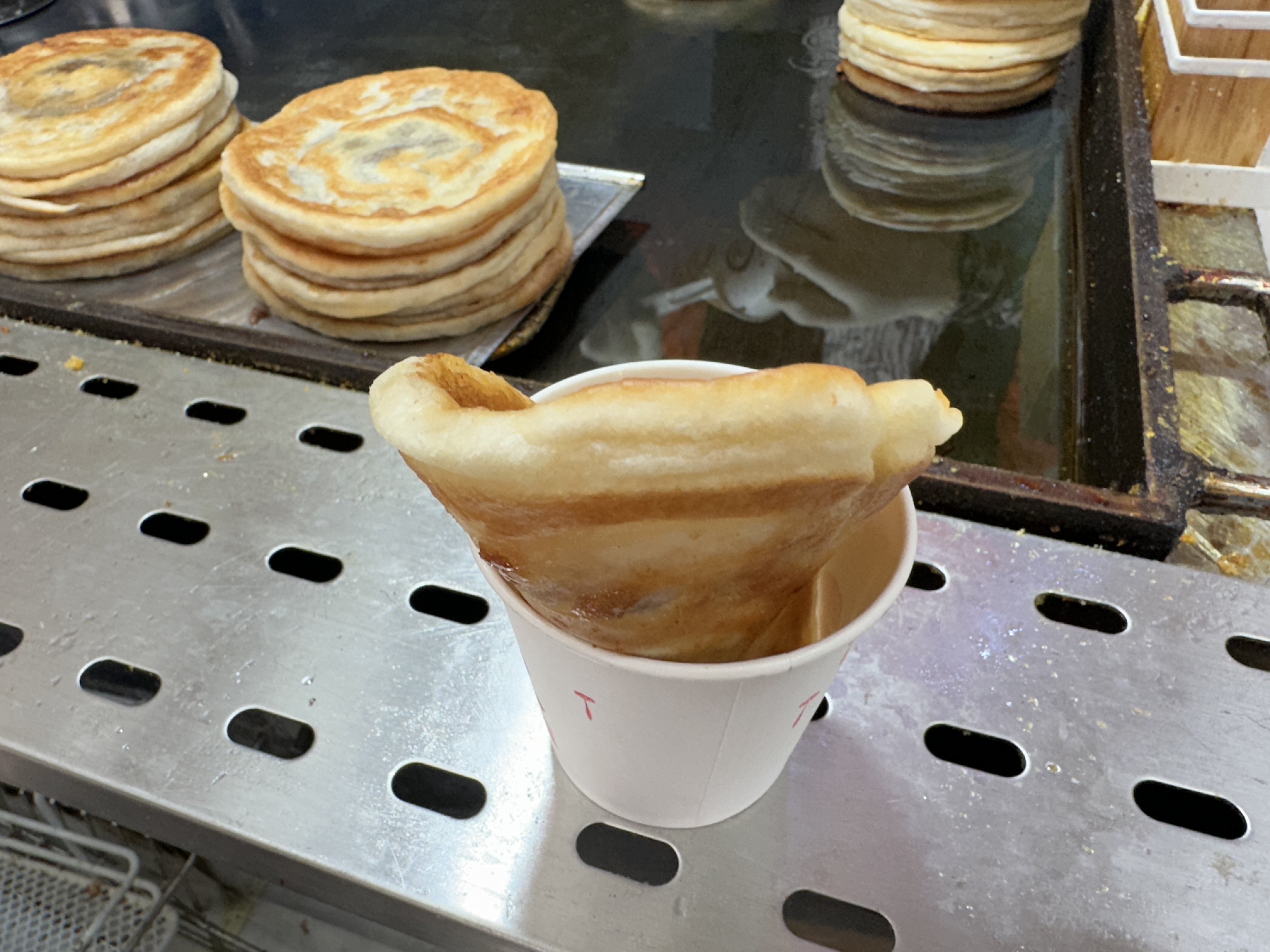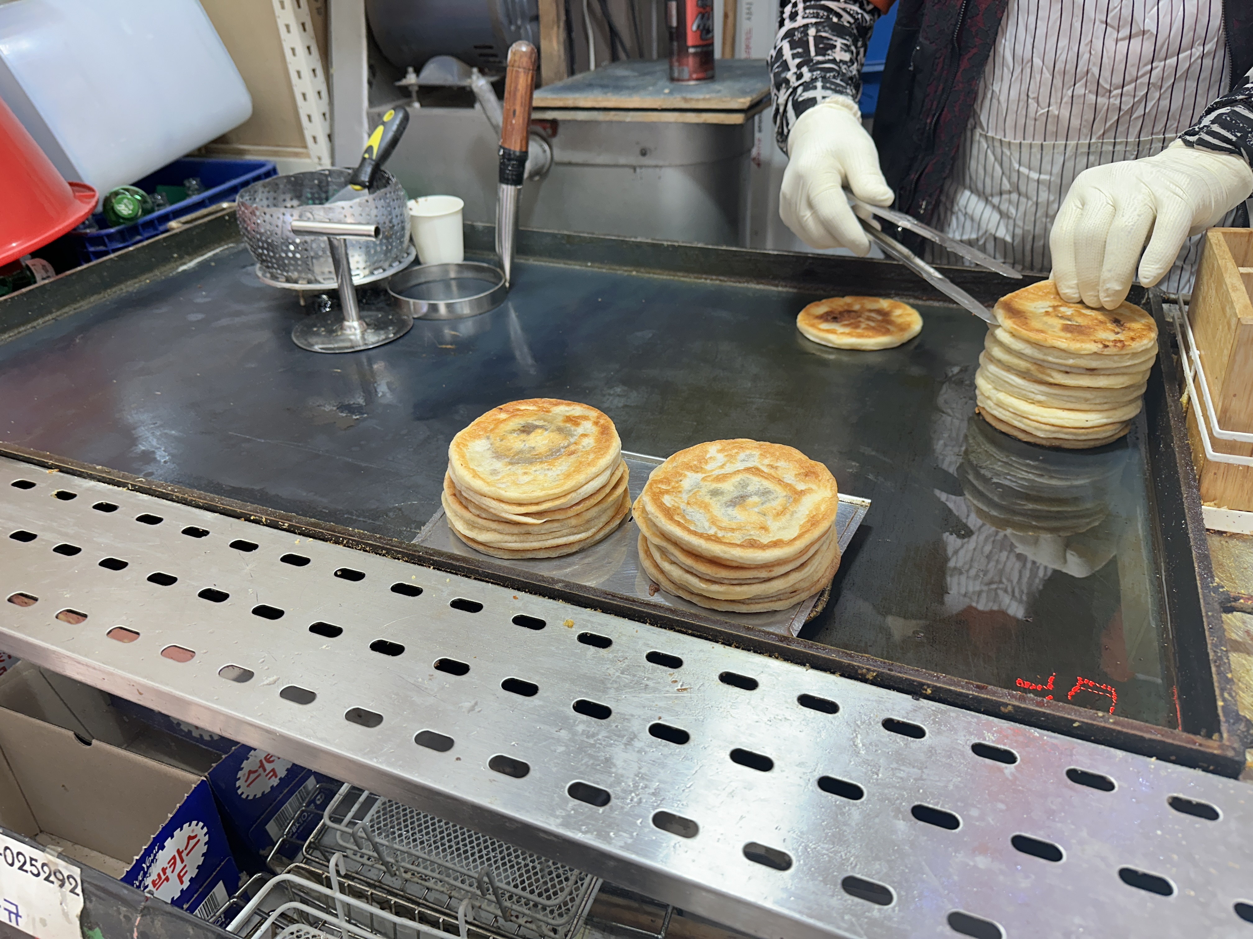 진천시장에서 유명한 찹쌀호떡을 파는 곳에 들렀습니다. 여행 전에 꼭 먹어봐야겠다고 마음먹었던 곳이었는데요. 철판 위에서 노릇하게 구워진 찹쌀호떡은 기름기가 많지 않고 쫄깃한 식감이 아주 좋았습니다.