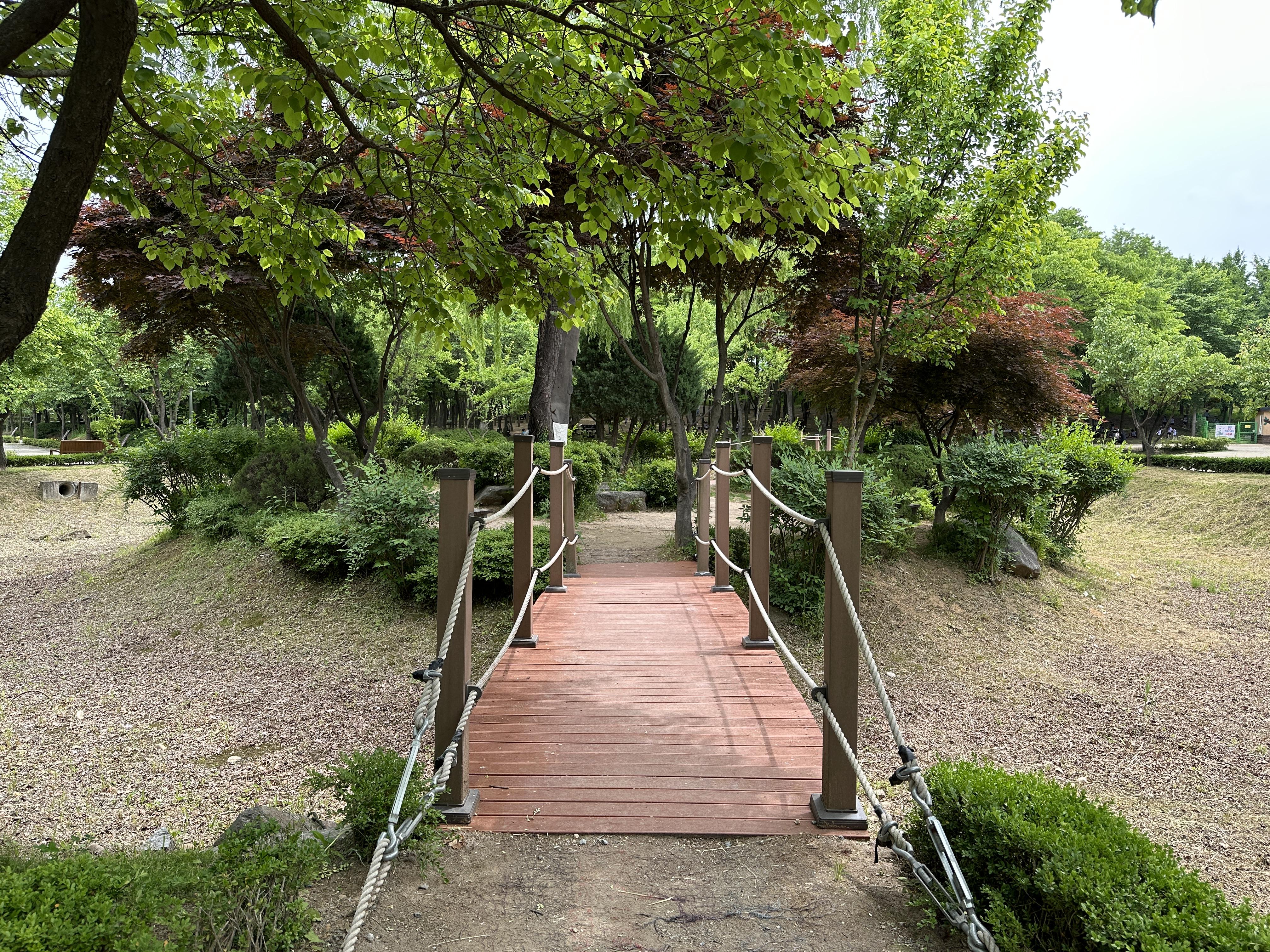 공원은 생태숲 산책로와 습지, 농촌 체험학습장을 갖추었다. 아이와 함께 걸으면 산책로는 자연학습장이 된다. 나무에 설치된 인공새집과 버섯을 양생 하는 모습도 볼 수 있고 가끔 다람쥐나 청설모,, 꾀꼬리, 고라니도 만날 수 있다. 아이와 아주 천천히 걸어도 한 시간 안으로 입구까지 돌아올 수 있다.