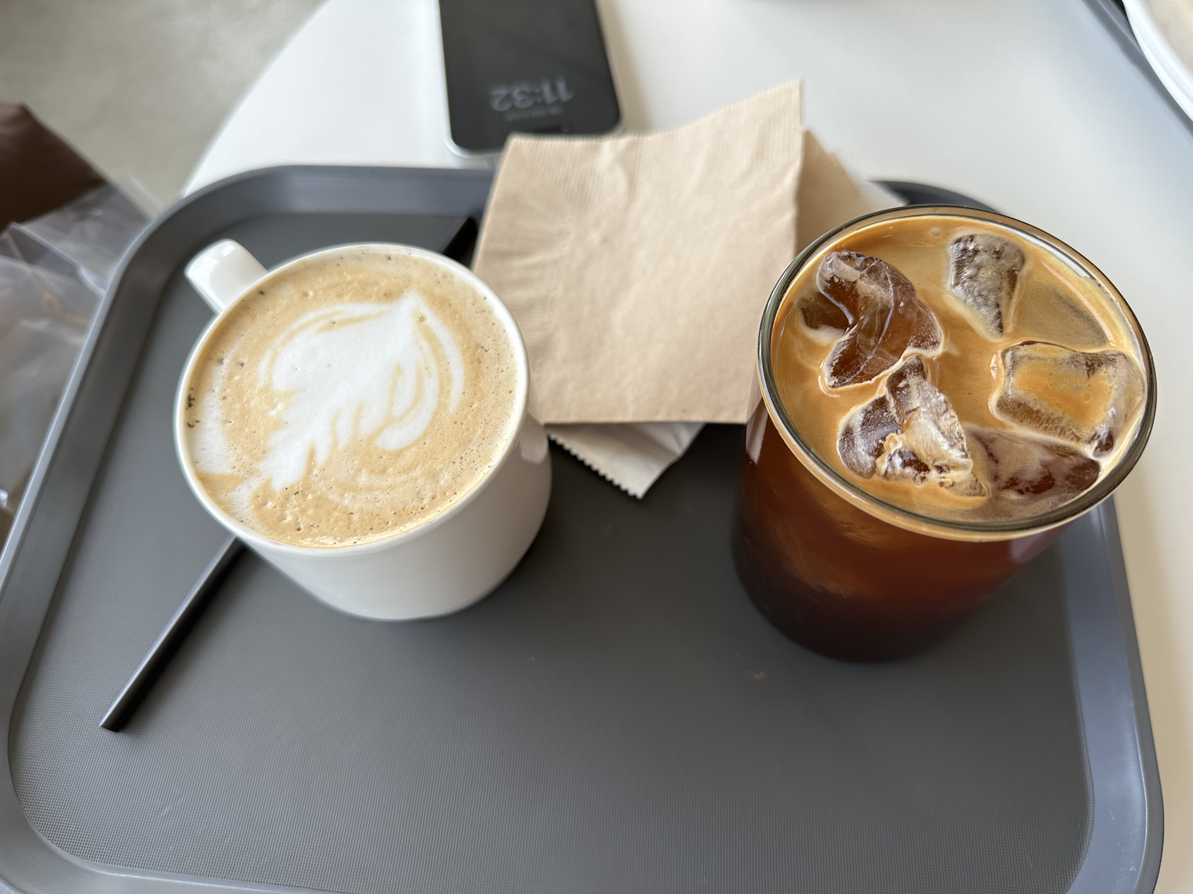 매장은 두 개의 층으로 나뉘어져 있습니다. 아랫층에는 주문키오스크와 손님용 테이블, 식료품 매장이 있고요. 내부 계단을 올라가면 나오는 층에는 손님들이 이용할 수 있는 테이블이 있어요. 음료를 마시든, 음식을 먹든 어디든 이용 가능합니다.