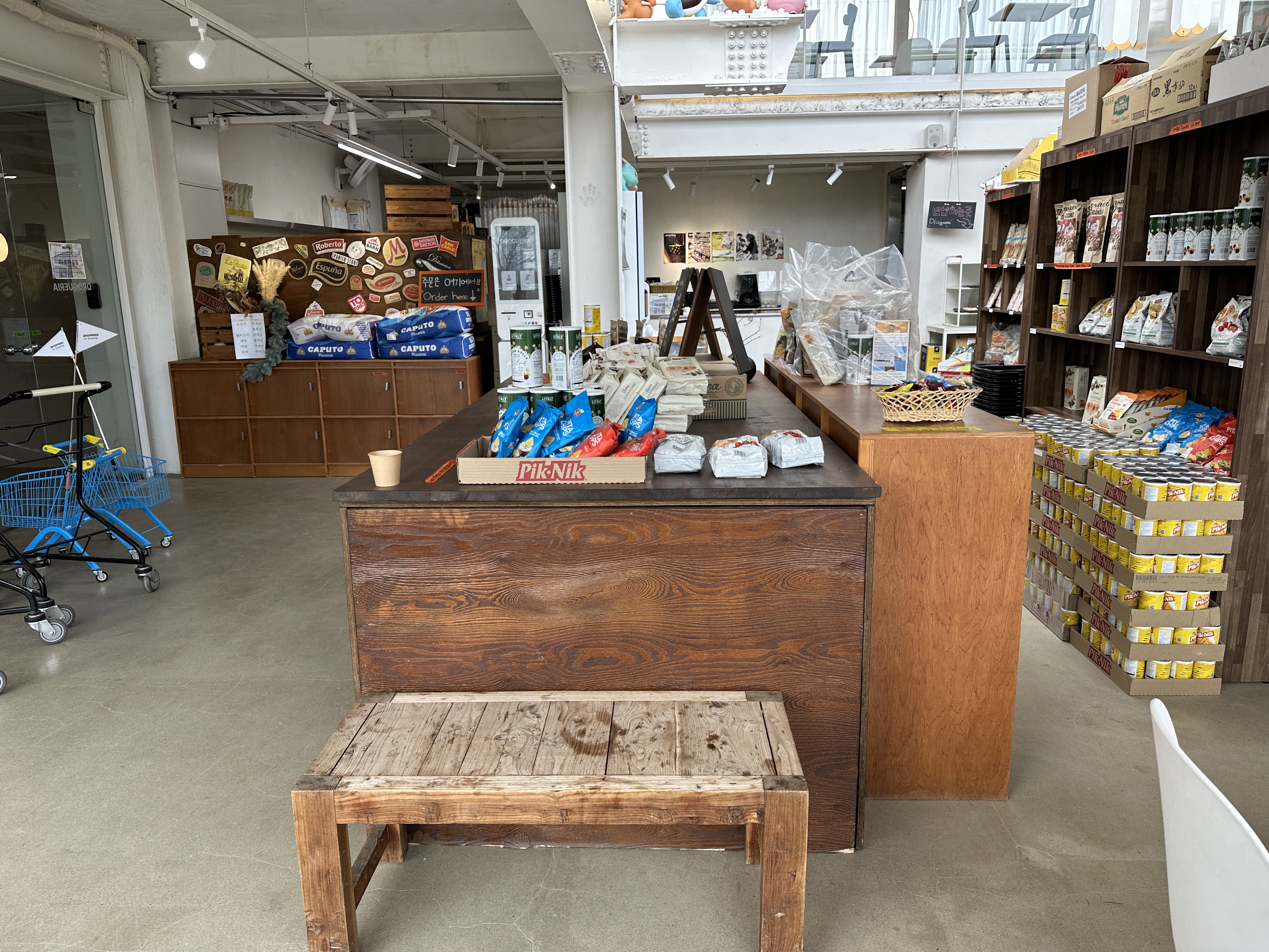 이 곳은 해외 식료품점을 겸하고 있는데요. 파스타 면이나 소스, 식재료, 과자, 와인, 치즈 등을 판매해요. 식재료가 다양해서 음식 먹으러 갔다가 참새방앗간처럼 꼭 쇼핑을 하게 되더라고요.