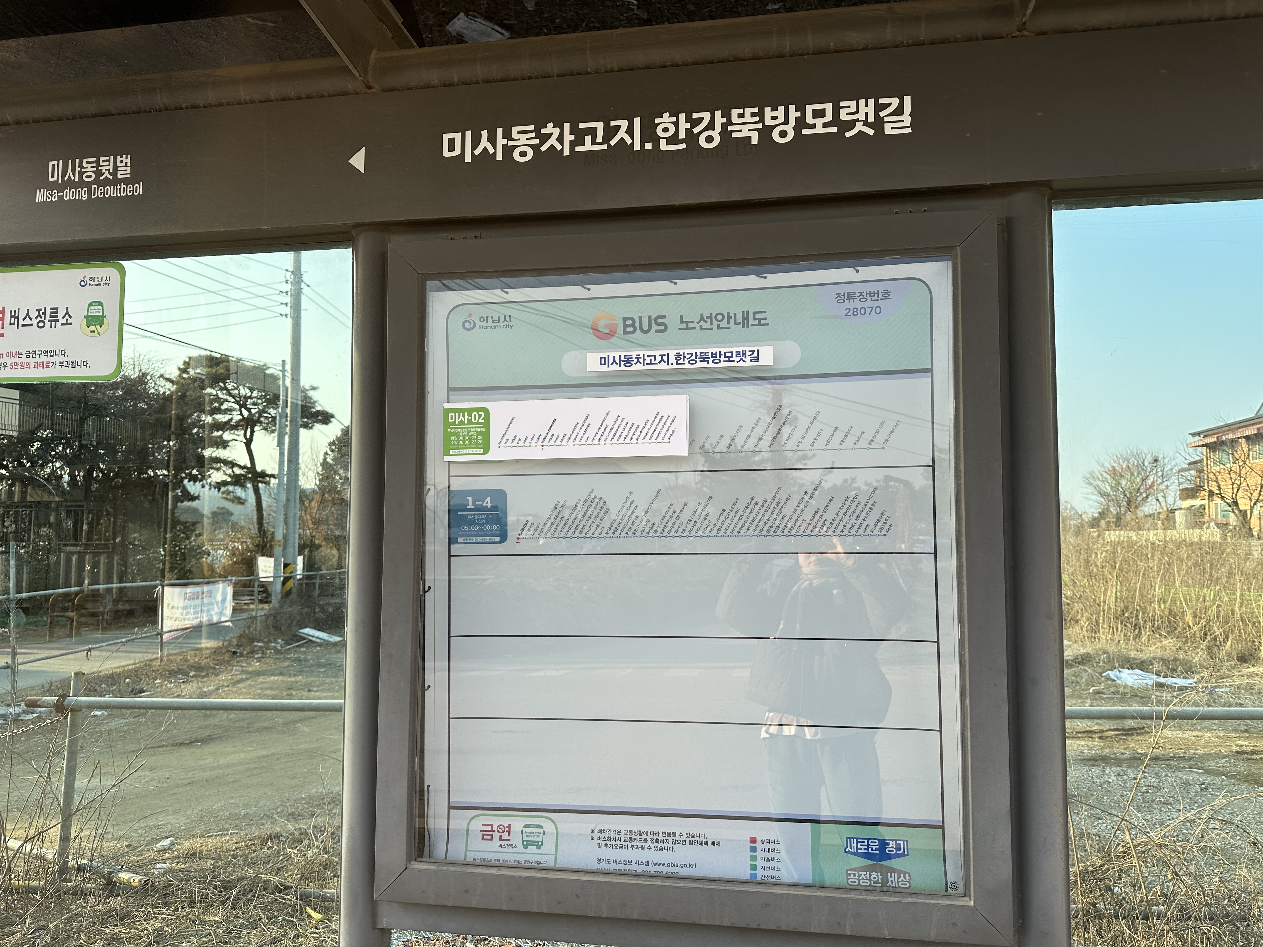 대중교통으로는 미사역에서 마을버스 02번을 타고 '미사동차고지, 한강뚝방모랫길' 정류장에서 내리면 도보 2분 거리에 있어요. 버스 소요시간은 10분 미만이에요.