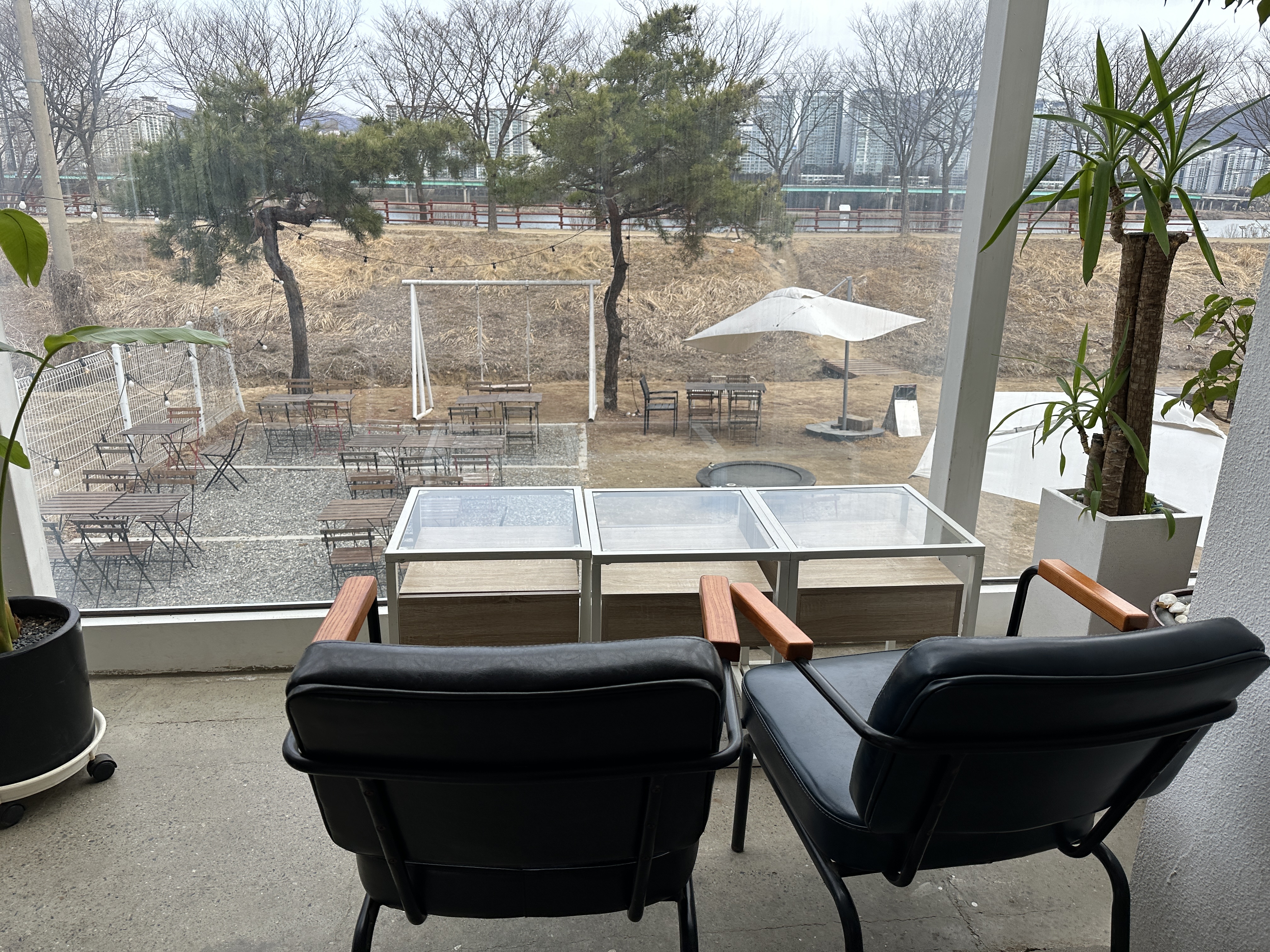 카페 마당은 한강변 산책로와 이어져 있기도 한데요. 강아지를 데리고 와 산책도 겸하고 가시는 분들도 많더라고요.