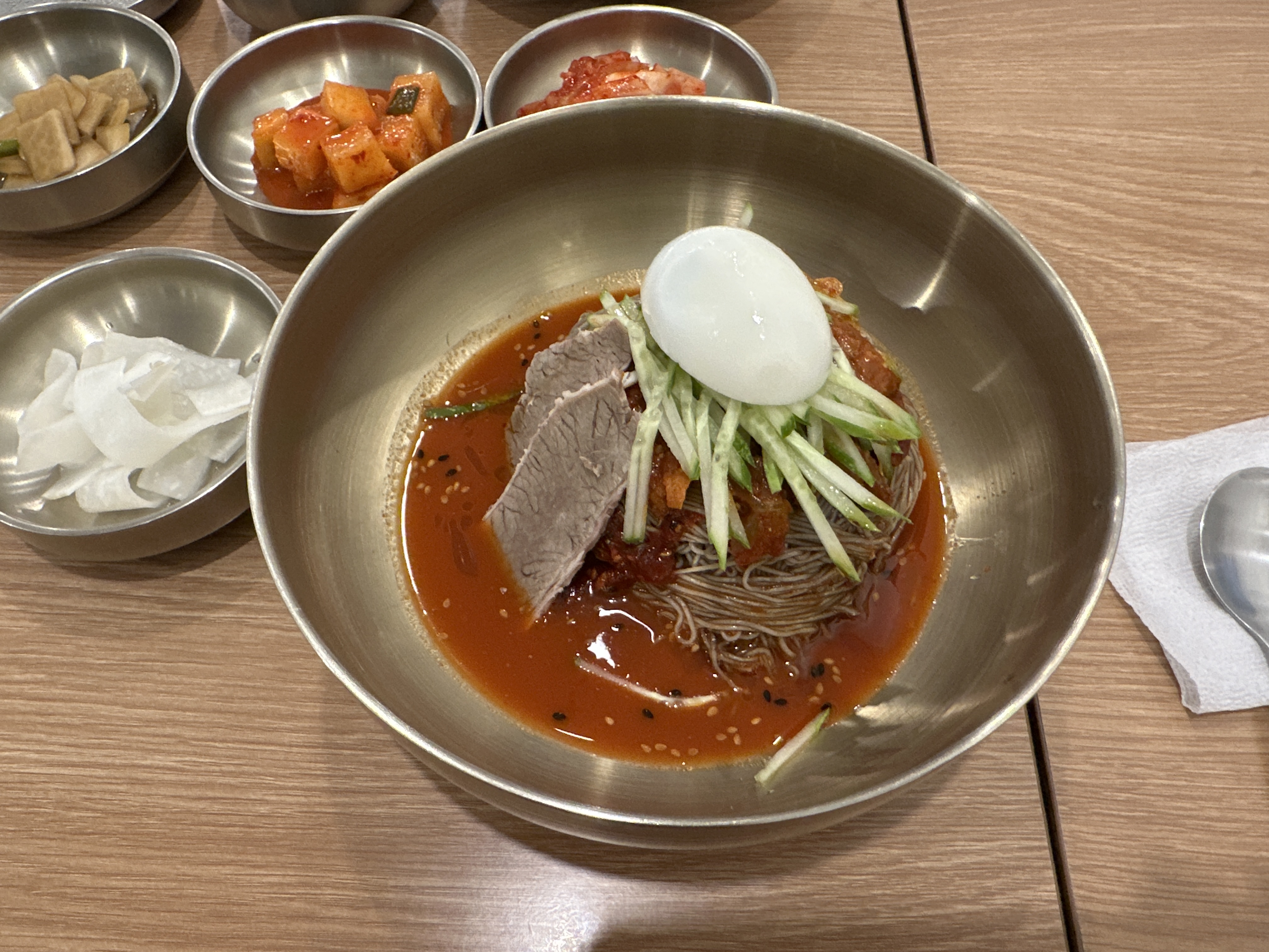 냉면에 든 홍어회는 약간 꼬들꼬들하게 씹혔다. 확실히 명태회 냉면과 차이가 있었다. 고기는 양지고기인데 설렁탕에 들어가는 고기와 비슷했다. 회냉면을 좋아한다면 굳이 세끼미냉면 말고 그냥 회냉면을 주문하길 추천한다.