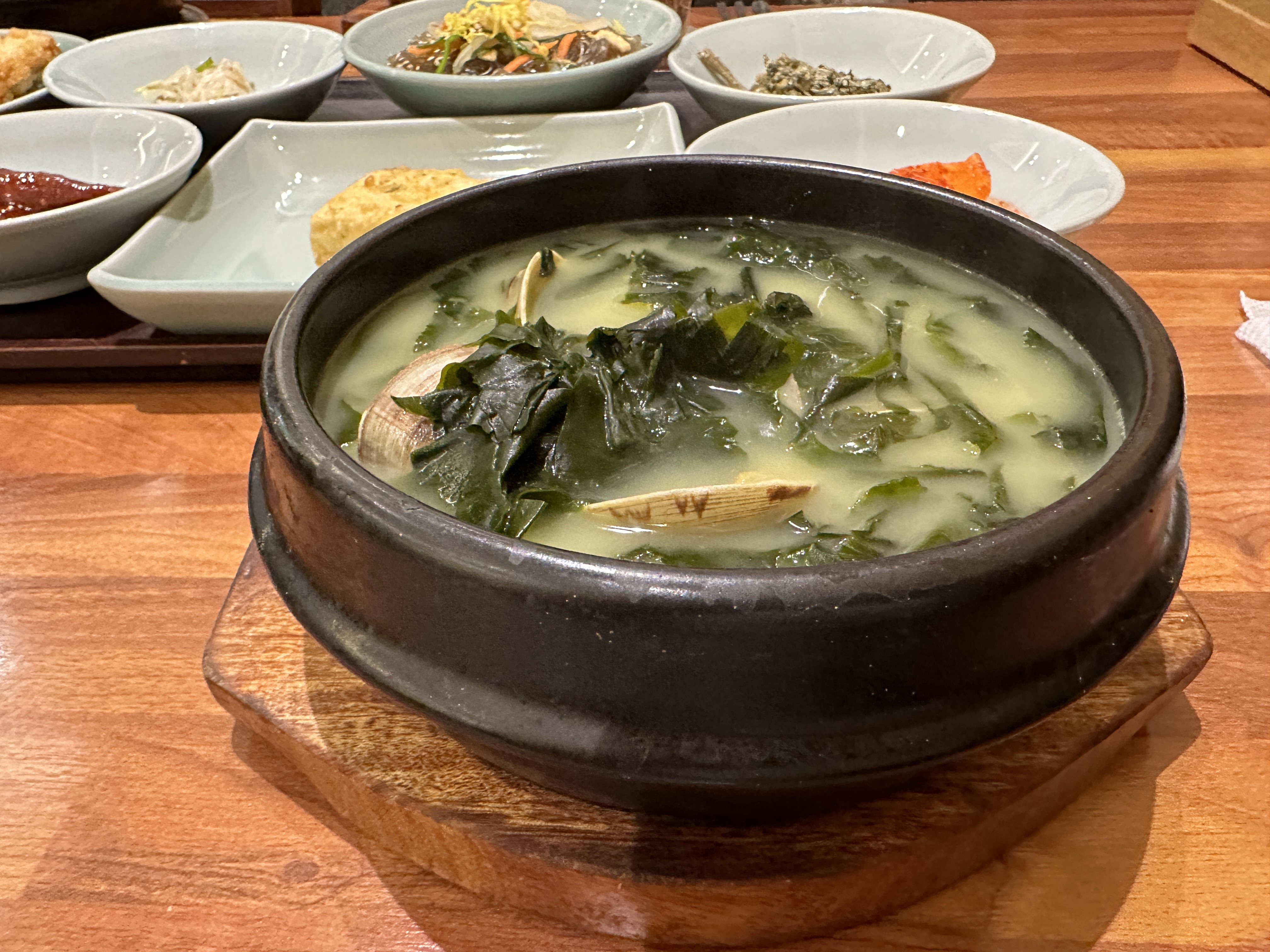뽀얀 국물에 미역과 조개가 가득 담겼다. 미역국에 들어가는 조개 종류는 수급 상황에 따라 바뀐다고 하는데 이번에 먹은 조개는 백합조개 같았다. 쫄깃해서 씹는 맛이 있다.
