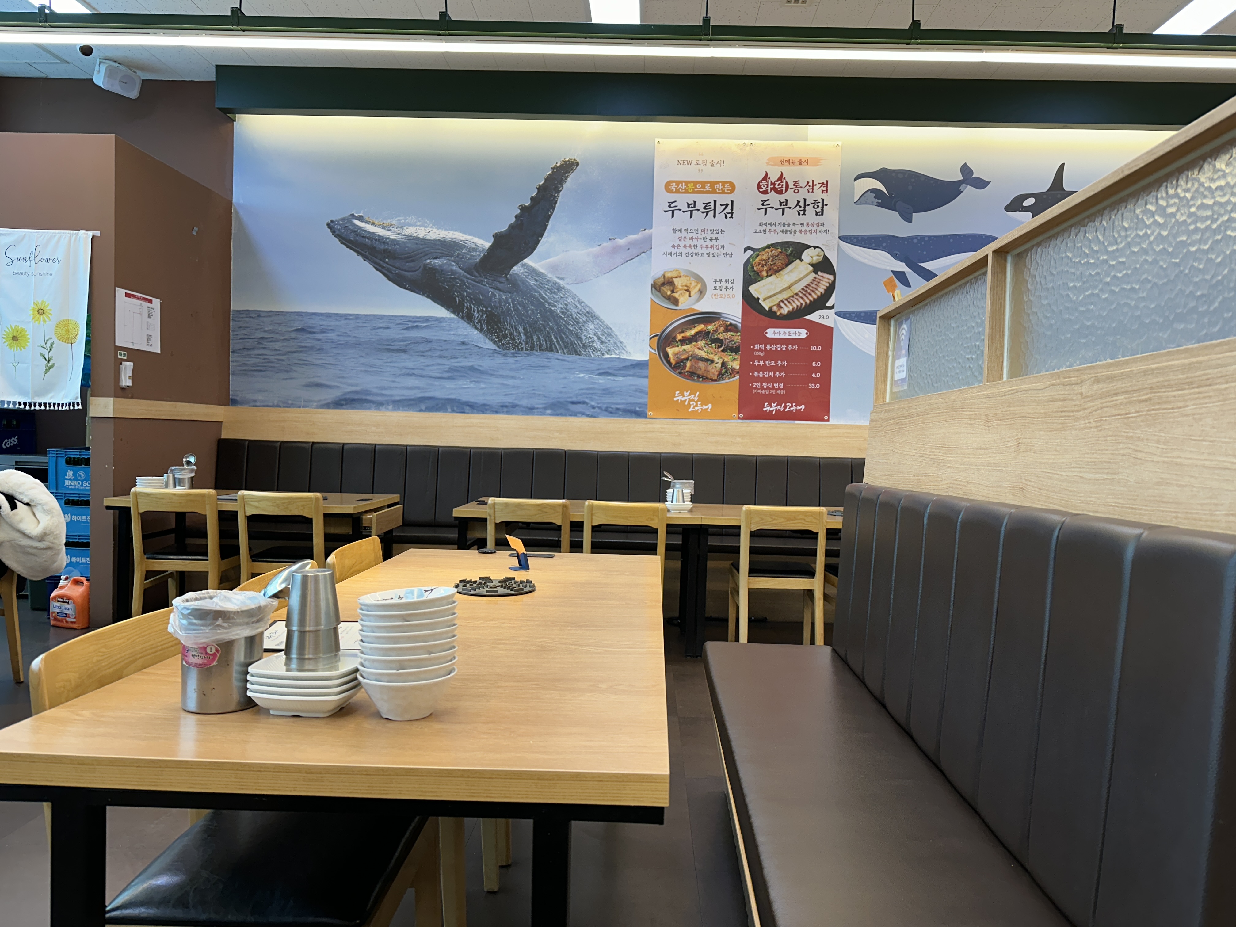 오픈시간이 11시인데 코스트코 오픈런(10시)으로 장을 보고 식당에 도착하니 11시 30분이었다. 대여섯 테이블의 손님들이 이미 식사 중이었다. 매장이 꽤 넓어서 자리는 여유롭였다.