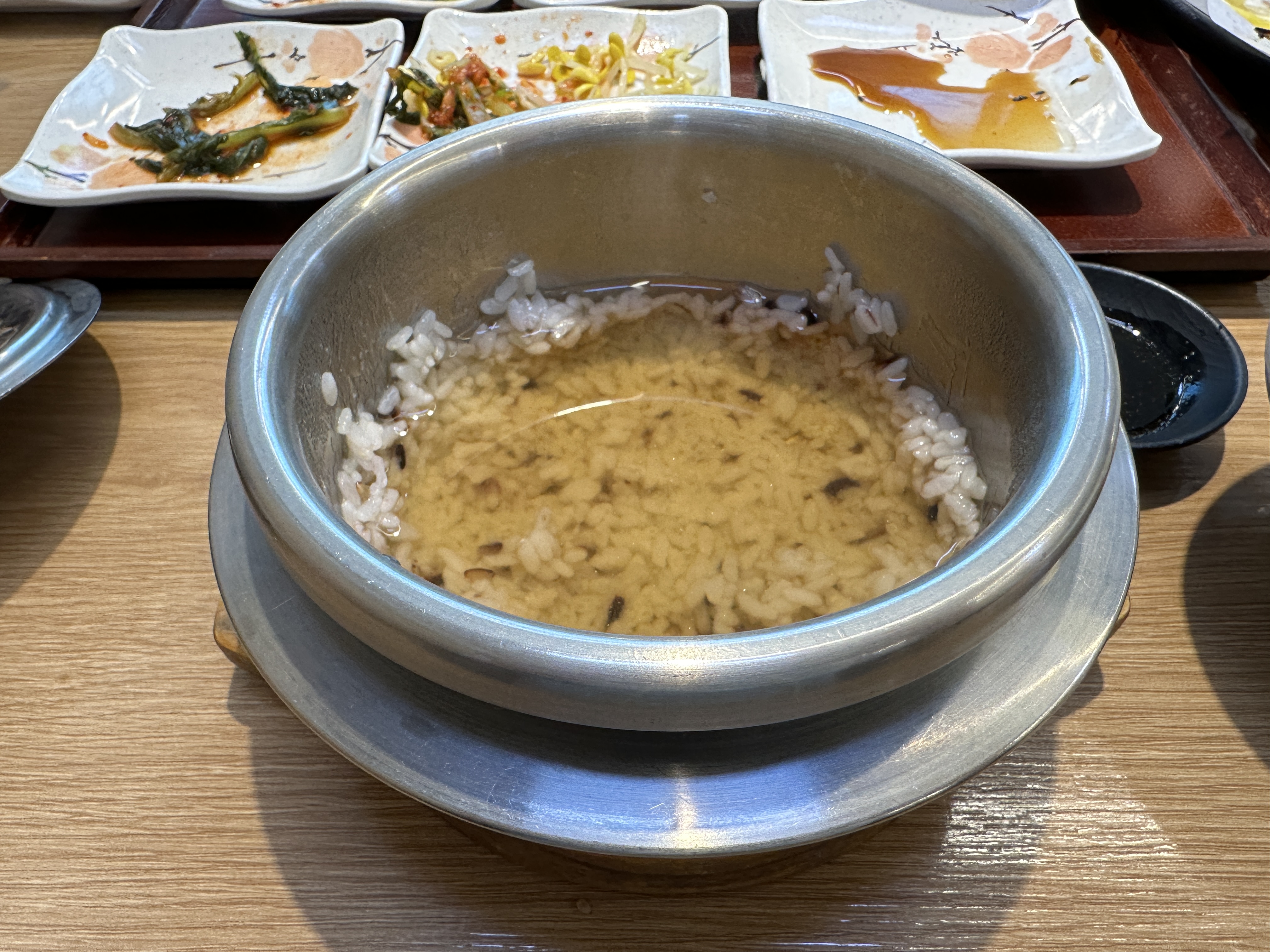 생선구이의 밥은 각각 돌솥에 나왔다. 밥을 그릇에 푸고난 후, 솥에 뜨거운 누룽지 물을 부어두면 맛있게 불려진다. 갓 지은 밥도 따끈하고 부들부들했다.