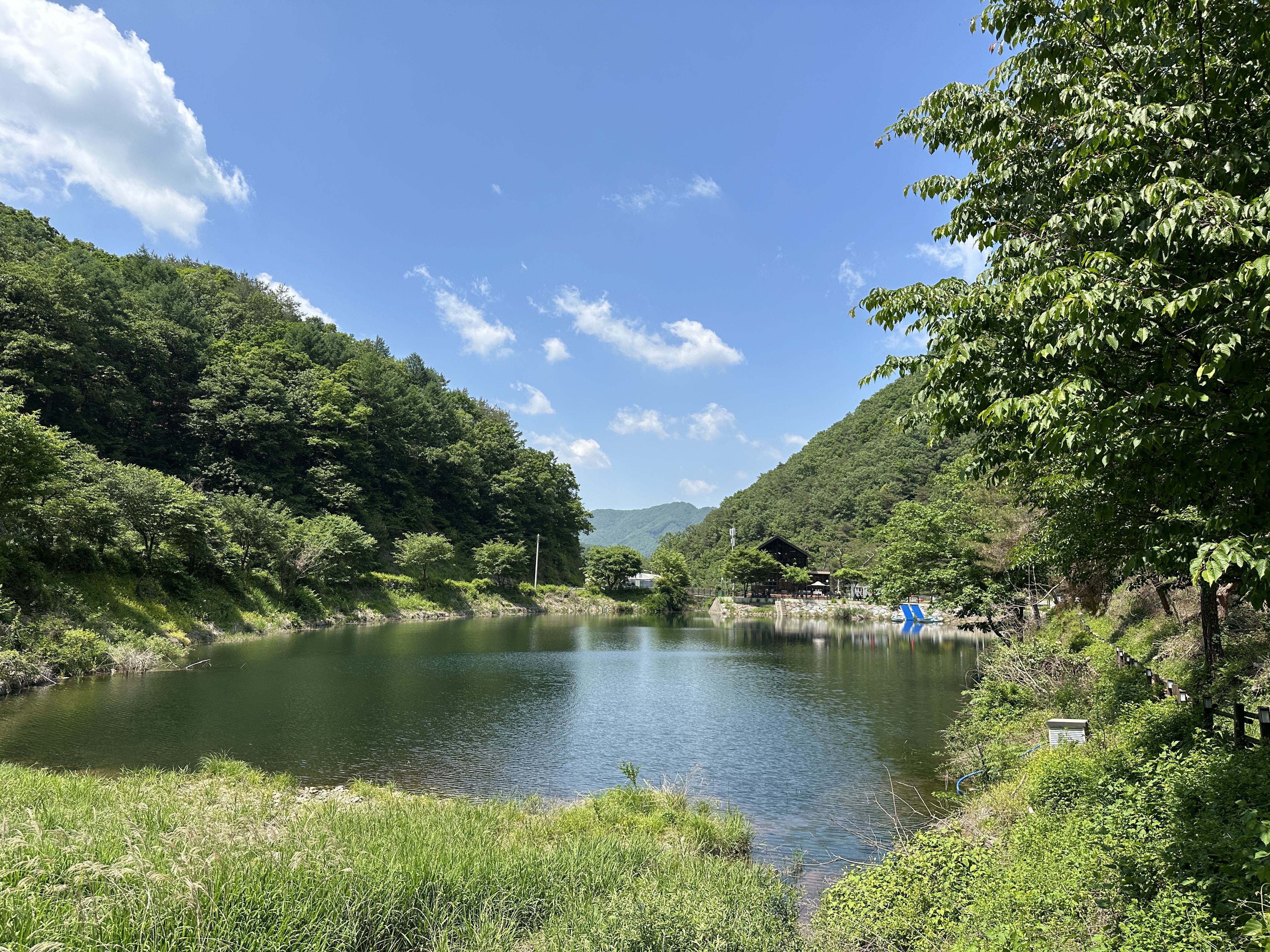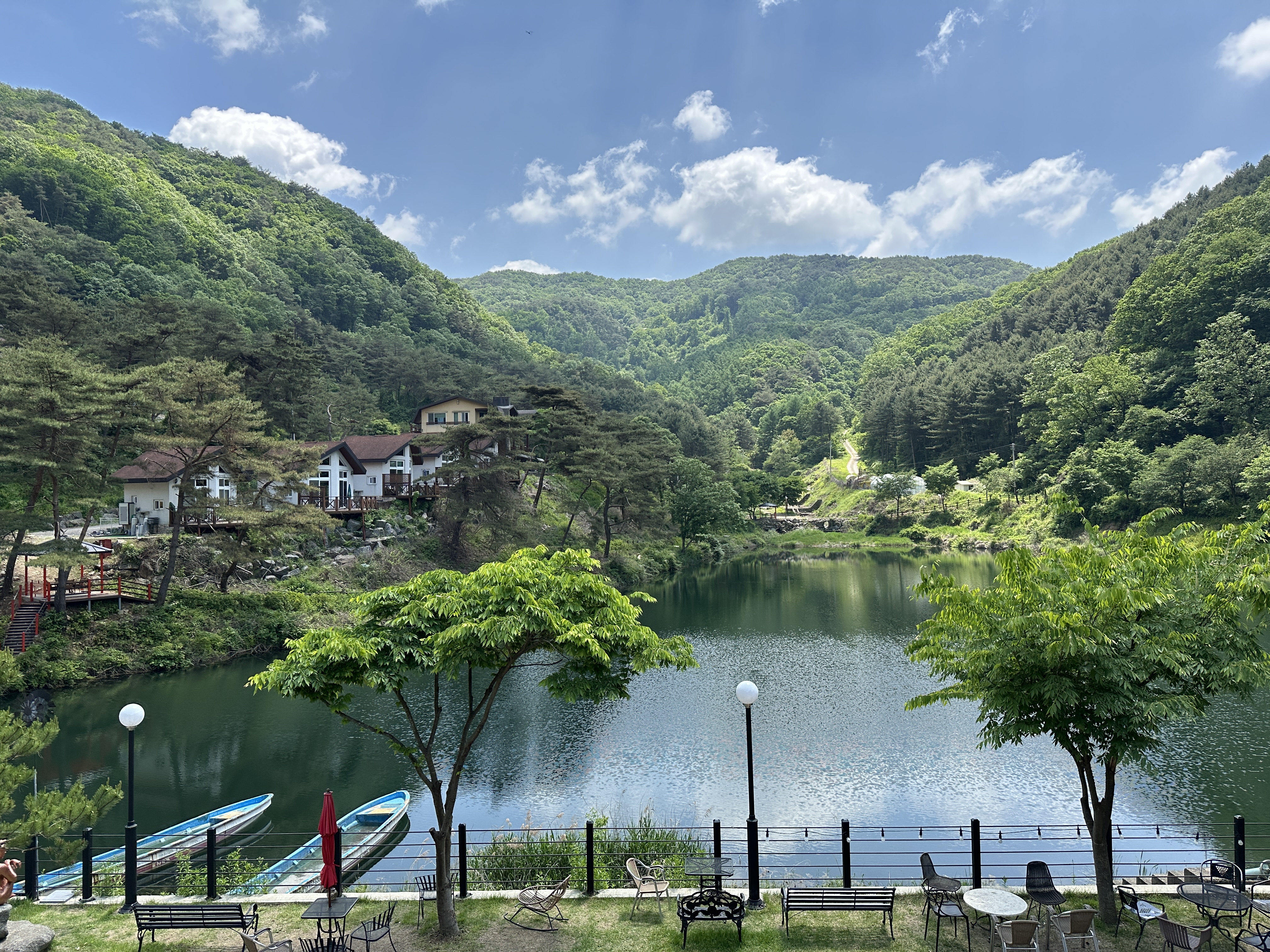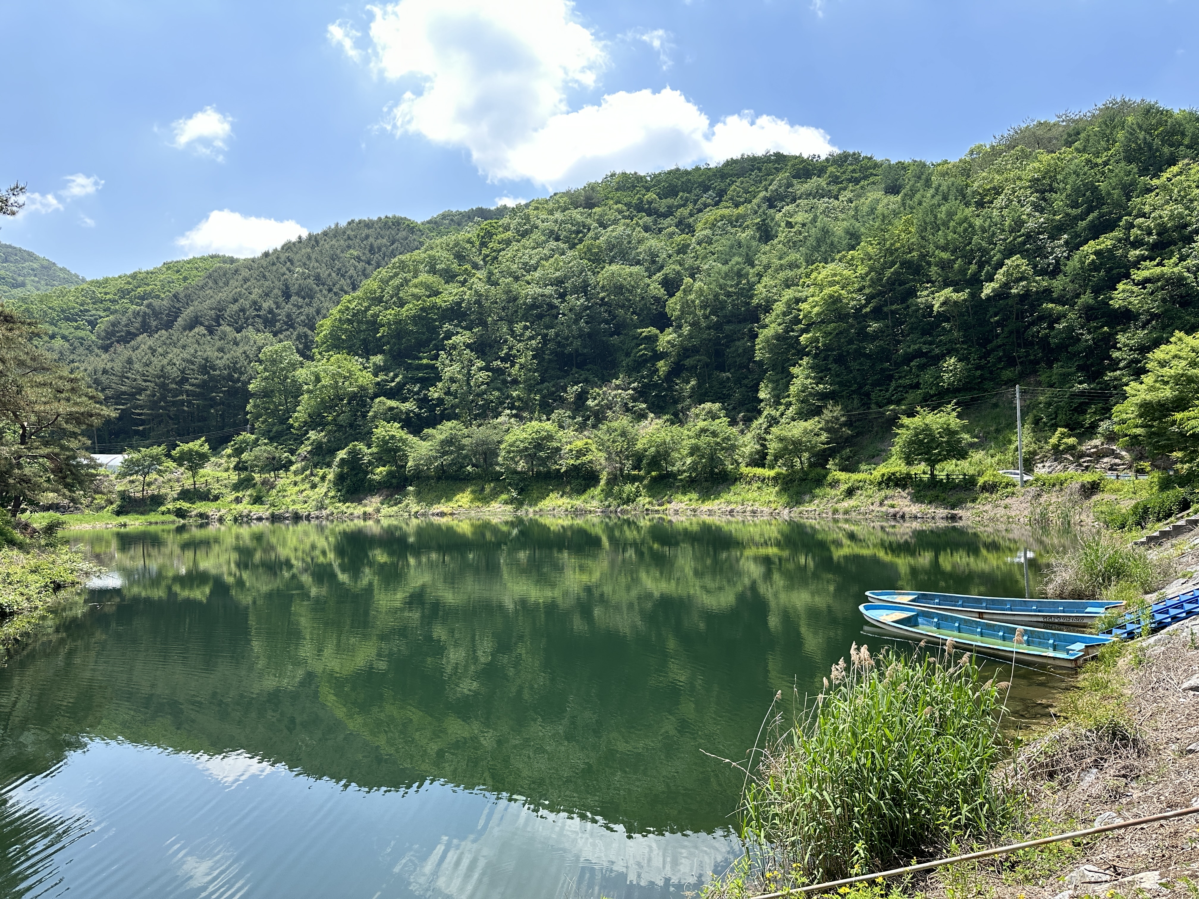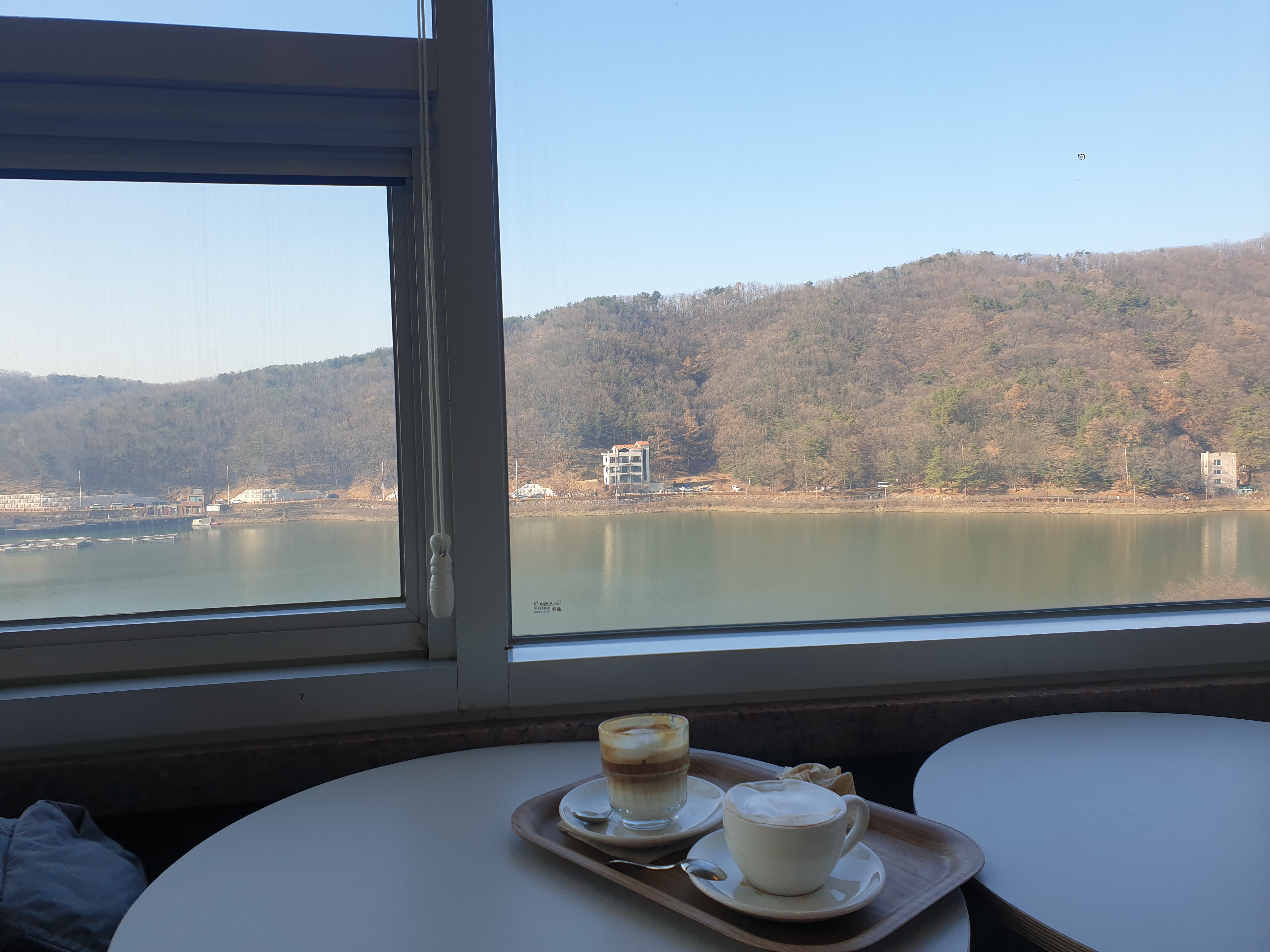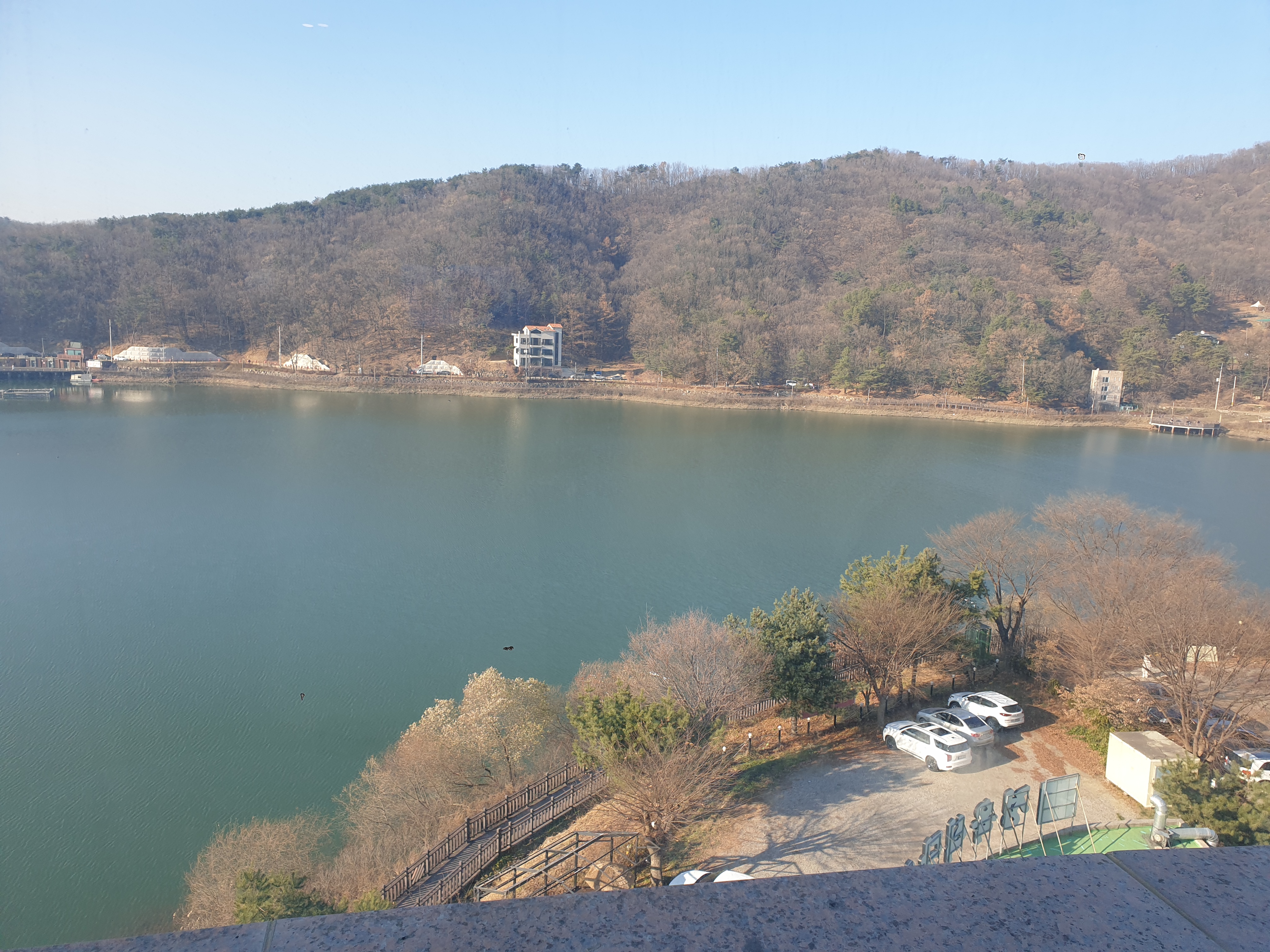 카페 앞 저수지는 규모가 아주 크지는 않아서 저수지를 한 바퀴 도는데 15분 정도밖에 소요되지 않습니다. 적당히 산책하고, 예쁜 경치를 보며 데이트를 즐길 수 있는 장소입니다.