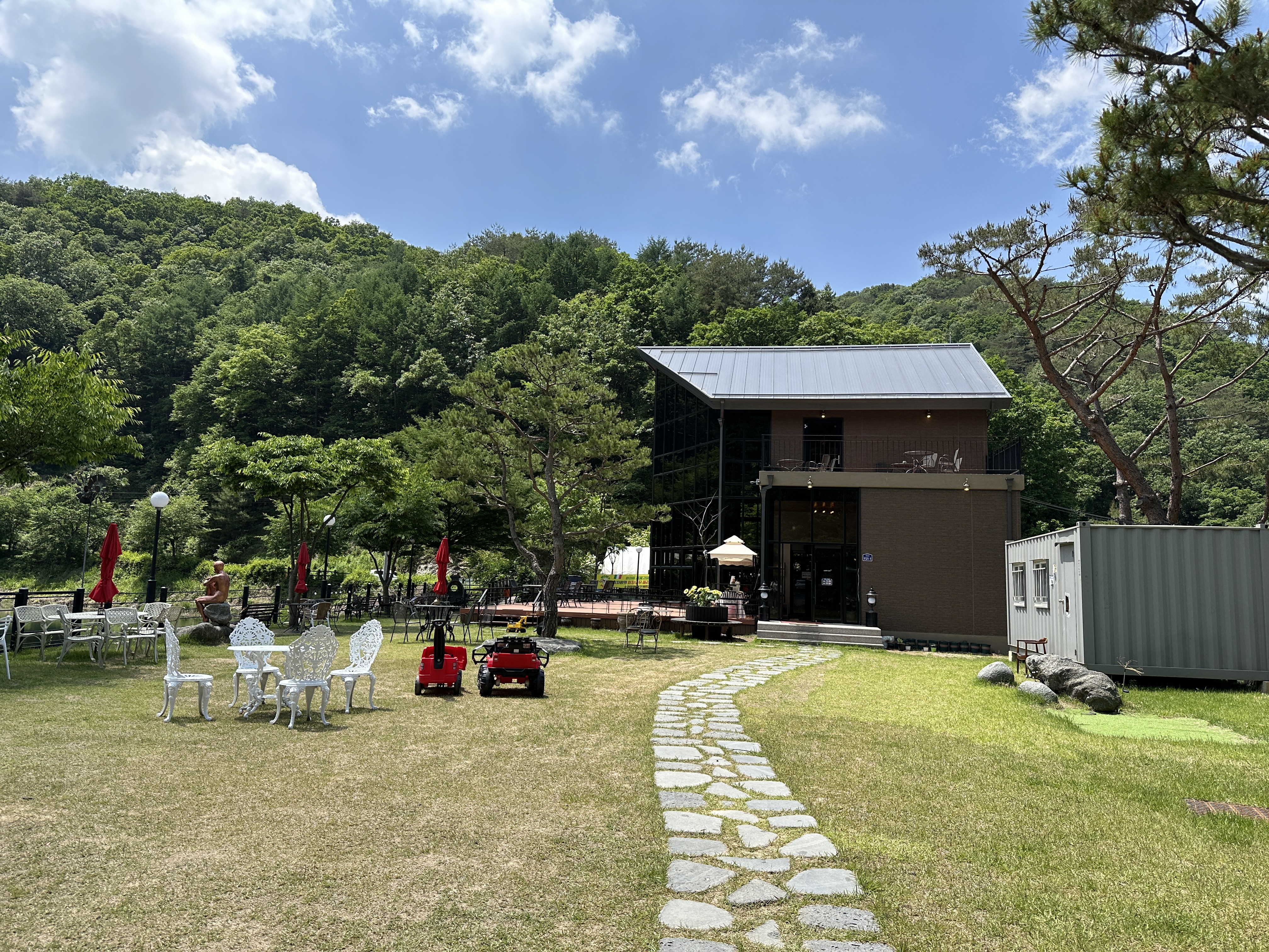 저는 겨울에 방문해 야외에 대형 난로가 설치되어 불멍을 즐길 수 있었는데요. 정원에 강도 흐르고 있어 자갈밭에서 아이들과 놀기에도 적당합니다. 가족들과 방문을 추천드립니다.