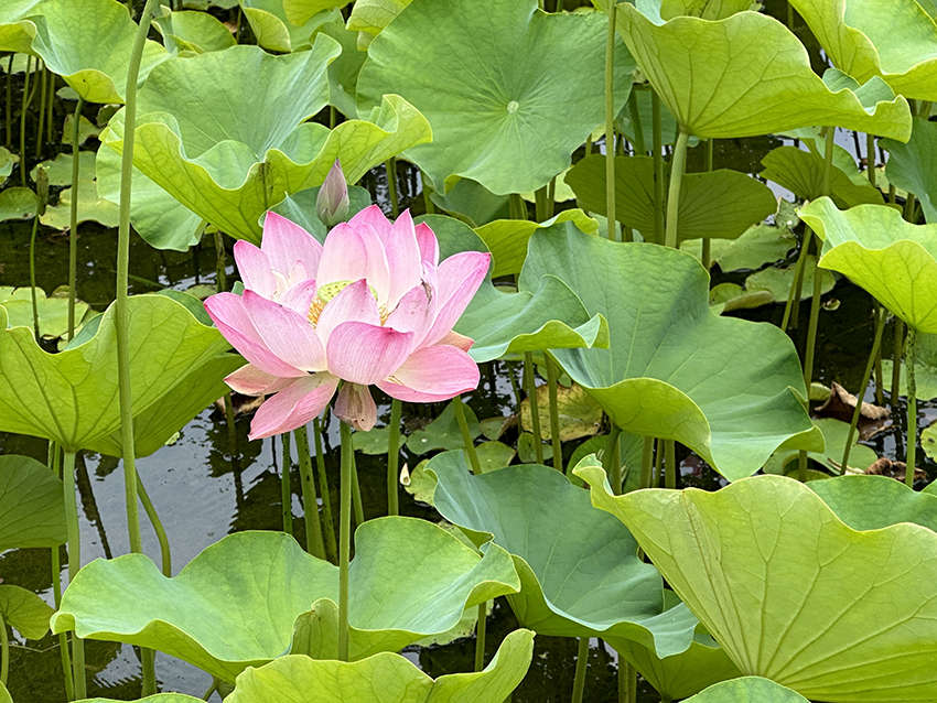 주정은 미술관 정면 중앙에 위치한  1,200평의 마당으로 연못과 정자, 작은 폭포와 개류, 대석단과 3단의 화계로 구성되어 있습니다. 주정 가운데 위치한 연못은 법연지로 진흙에서도 맑은 꽃을 피우는 연꽃처럼 인간정신의 아름다운 승화를 기원하고자 붙여진 이름입니다. 마침 연꽃이 활짝 피어있어 더 아름다웠습니다.