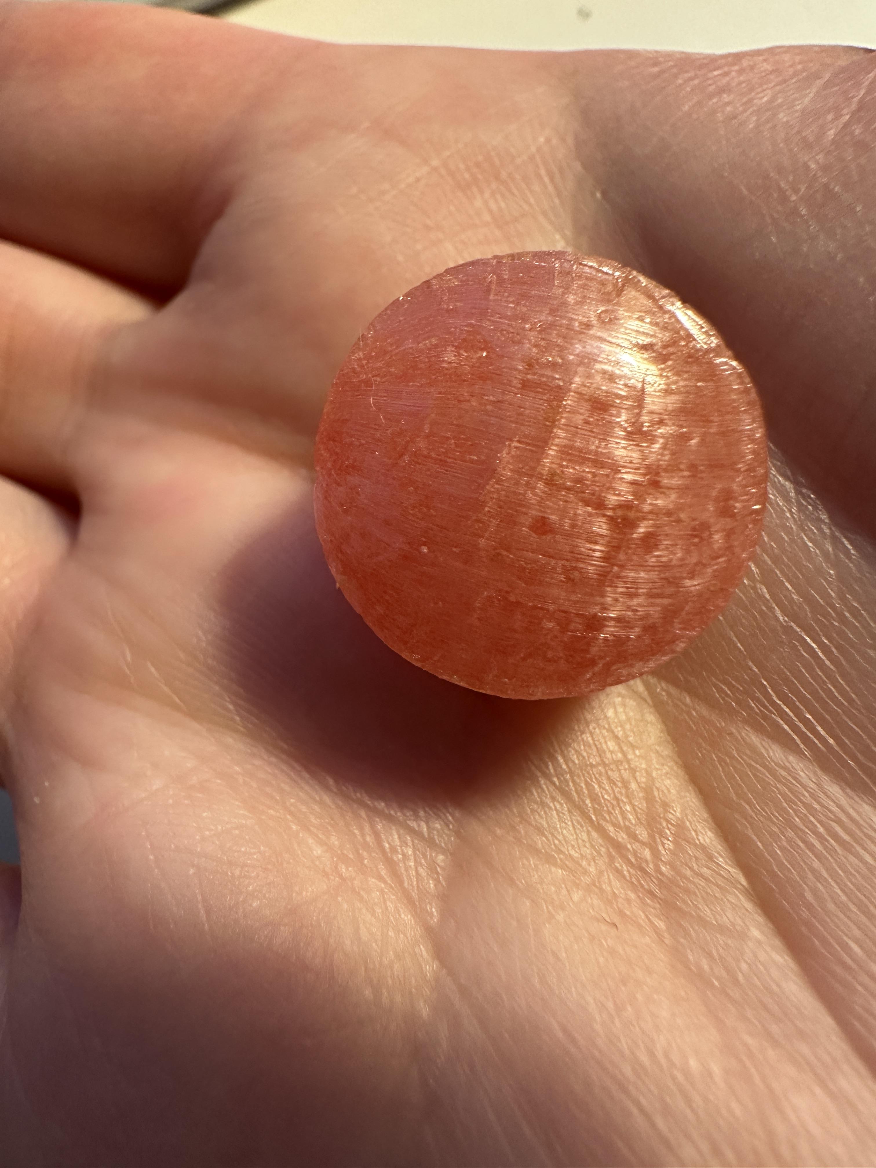 껍질을 까보면 동그란 사탕이 나오는데, 생각보다 아예 새빨갛지는 않았다.