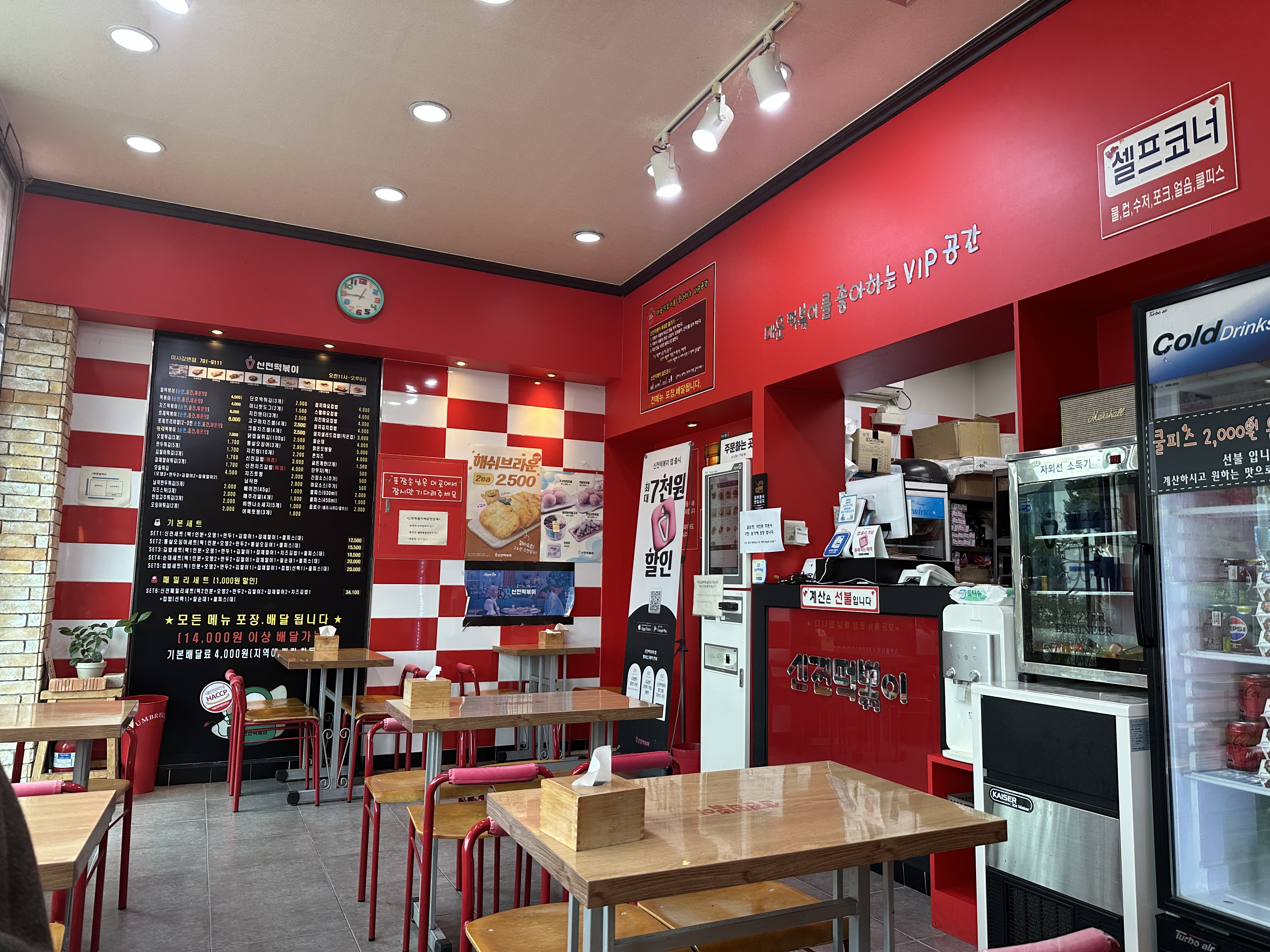 신전떡볶이 미사강변도시점은 매장이 테이블이 7개 정도다.
