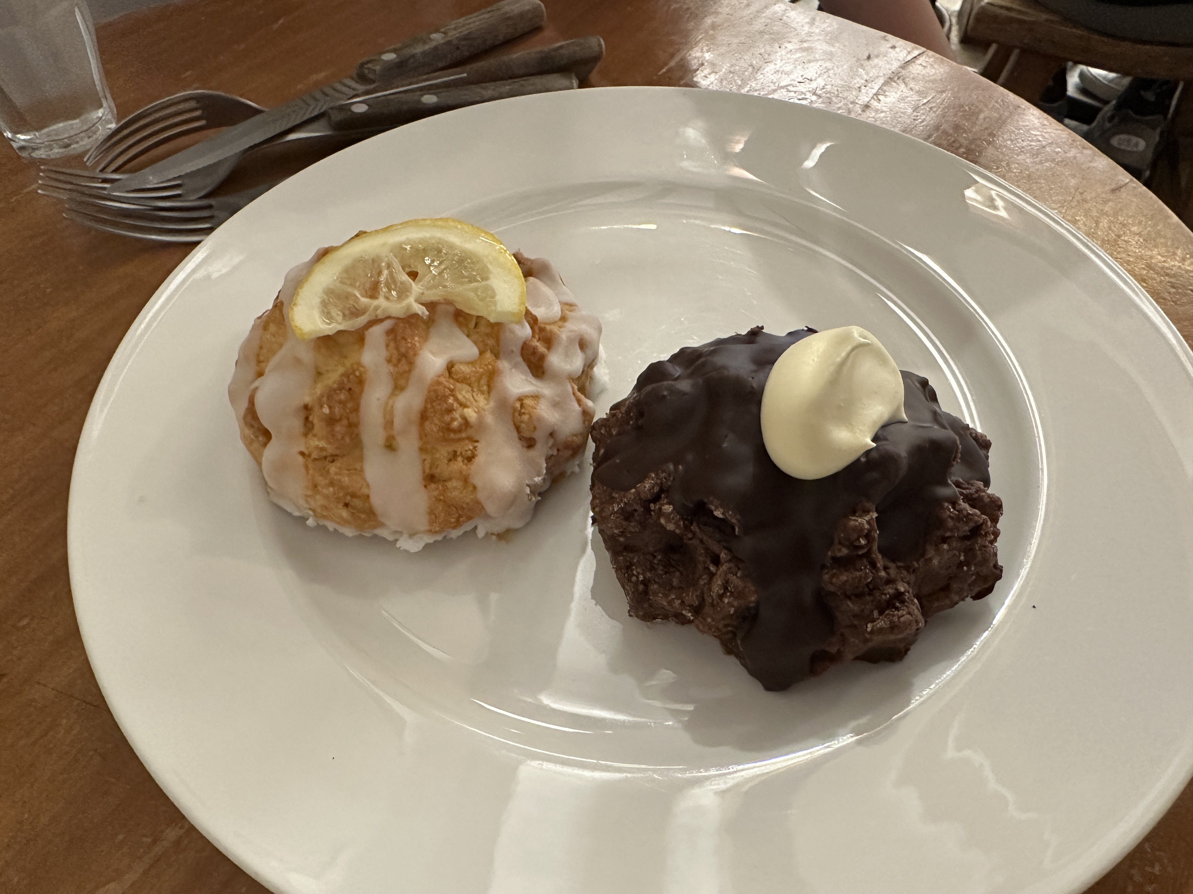 레몬스콘은 익숙한 맛이었는데 바삭하면서 레몬향이 진하게 났습니다. 매우 달아서 아메리카노와 아주 찰떡궁합!이었습니다.! 이었습니다. 초코 스콘은 스콘 자체도 초코 색에다가 스콘 위에 초콜릿과 흰 크림이 올려져 있는데 초등학생인 조카가 정말 맛있게 먹더라고요.