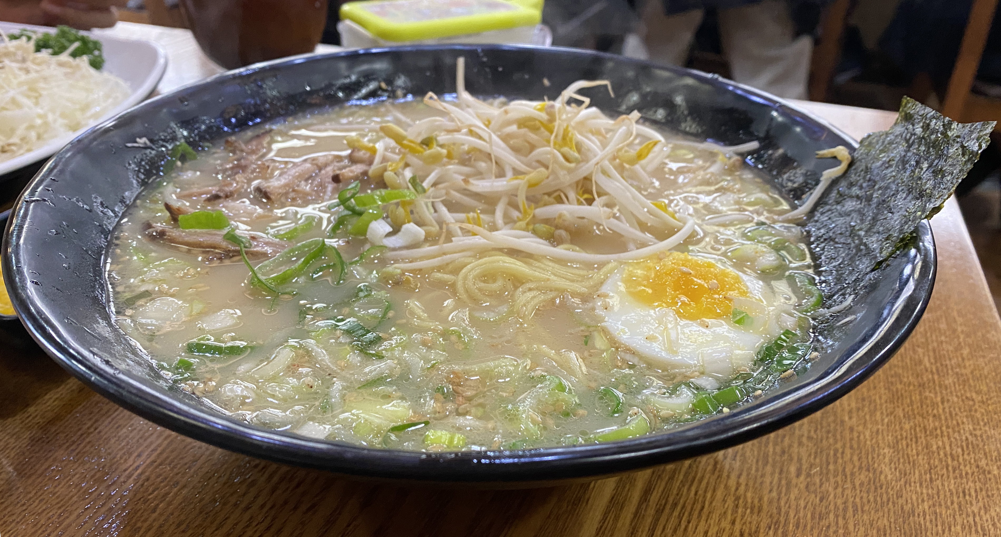 라멘도 먹고 싶고 돈까스도 먹고 싶을 때! 가야 하는 곳, 바로 신주쿠야입니다. 일본 라멘, 카레, 돈까스 전문점이거든요. 돈코프라멘은 일단 양이 푸짐해요. 커다란 그릇에 가득 나옵니다. 차슈와 반숙, 숙주가 면위에 올려져 나오는데요. 국물에 섞어 한 젓가락 집으면 음~ 소리가 절로 나옵니다.