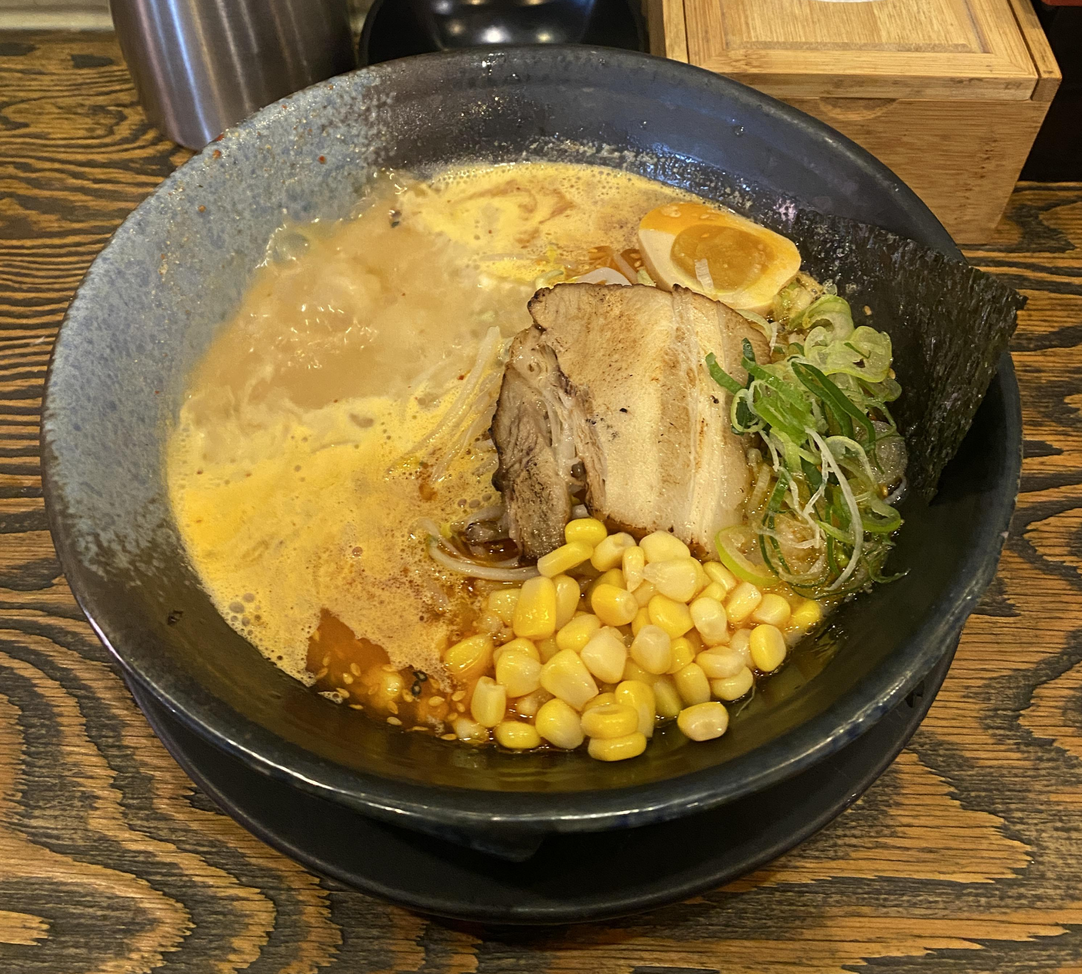 산쪼메의 시그니쳐 메뉴인 산쪼메 라멘은 화산라멘이라고도 부르더라고요. 라멘 그릇 안에 커다란 돌이 들어있어요!! 돌이 엄청 뜨거운데 라멘의 온도를 유지시켜 주는 것 같았어요. 돌이 라멘 그릇 안에서 보글보글 끓는 게 신기합니다. 라멘 위에 차슈와 콘 옥수수가 올려져 있는데요. 매장이 엄청 넓지는 않아서 혼밥 하기 좋은 라멘집입니다.