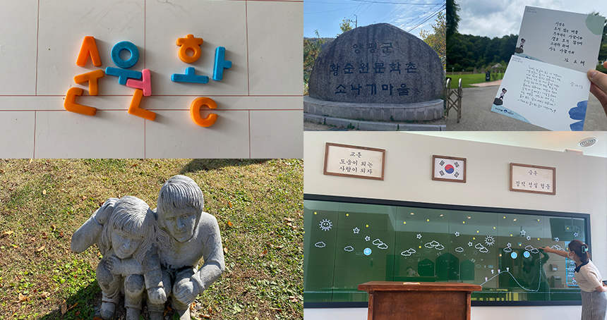 소나기 광장에는 소설 속, 소년과 소녀가 소나기를 피했던 수숫단 모양의 조형물이 여러 개 설치되어 있어 아이들과 함께 방문한다면 소나기를 피하는 놀이를 즐겁게 할 수 있답니다. 저는 친구들과 갔지만 부모님과 함께 온 아이들이 소나기를 맞으며 꺄르르 웃는 소리에 절로 기분이 좋아지더라고요. 연인과는 징검다리를 건너며 소설 속 주인공이 되어보는 것도 좋겠죠?
