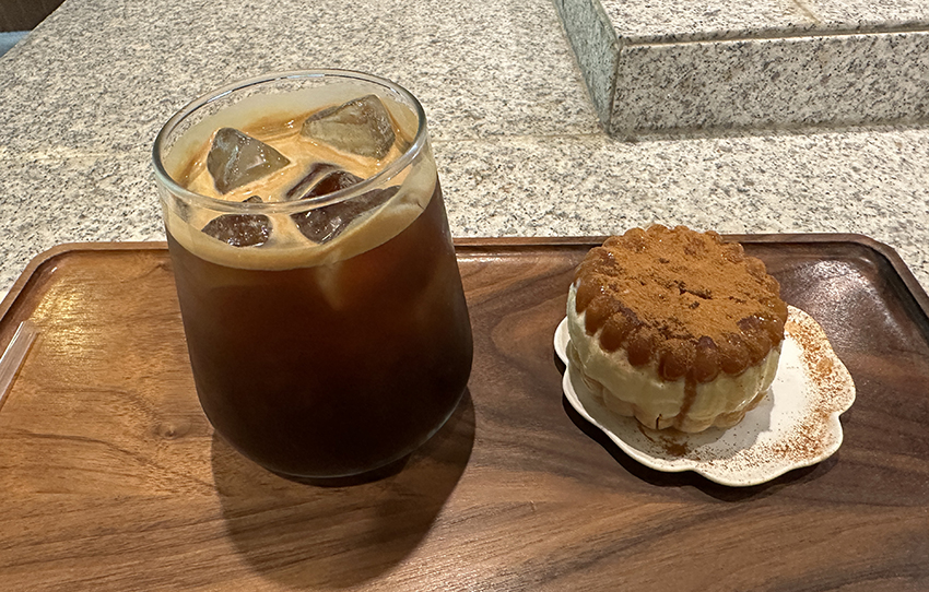 아메리카노는 약간 산미 있는 맛이었고요. 달달한 약과 모나카와 찰떡궁합이었습니다. 약과 모나카는 살짝 언 상태로 나왔는데요. 모나카 과자와 약과 사이에 아이스크림이 들어있어요. 약과 위에 듬뿍 뿌려진 시나몬 가루 향이 진해서 좋았습니다. 잠시 두었다가 살짝 녹으면 먹으면 되는데요. 그냥 보면 너무 커서 어떻게 먹나 하시겠지만 녹으면 센스 있게 4조각으로 잘라져 있어요!! 한입에 쏙 넣기 좋았습니다.