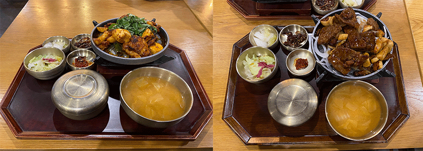 본우리반상 메뉴_강원도 양념 닭구이반상(좌), 충청도 석갈비 반상(우)