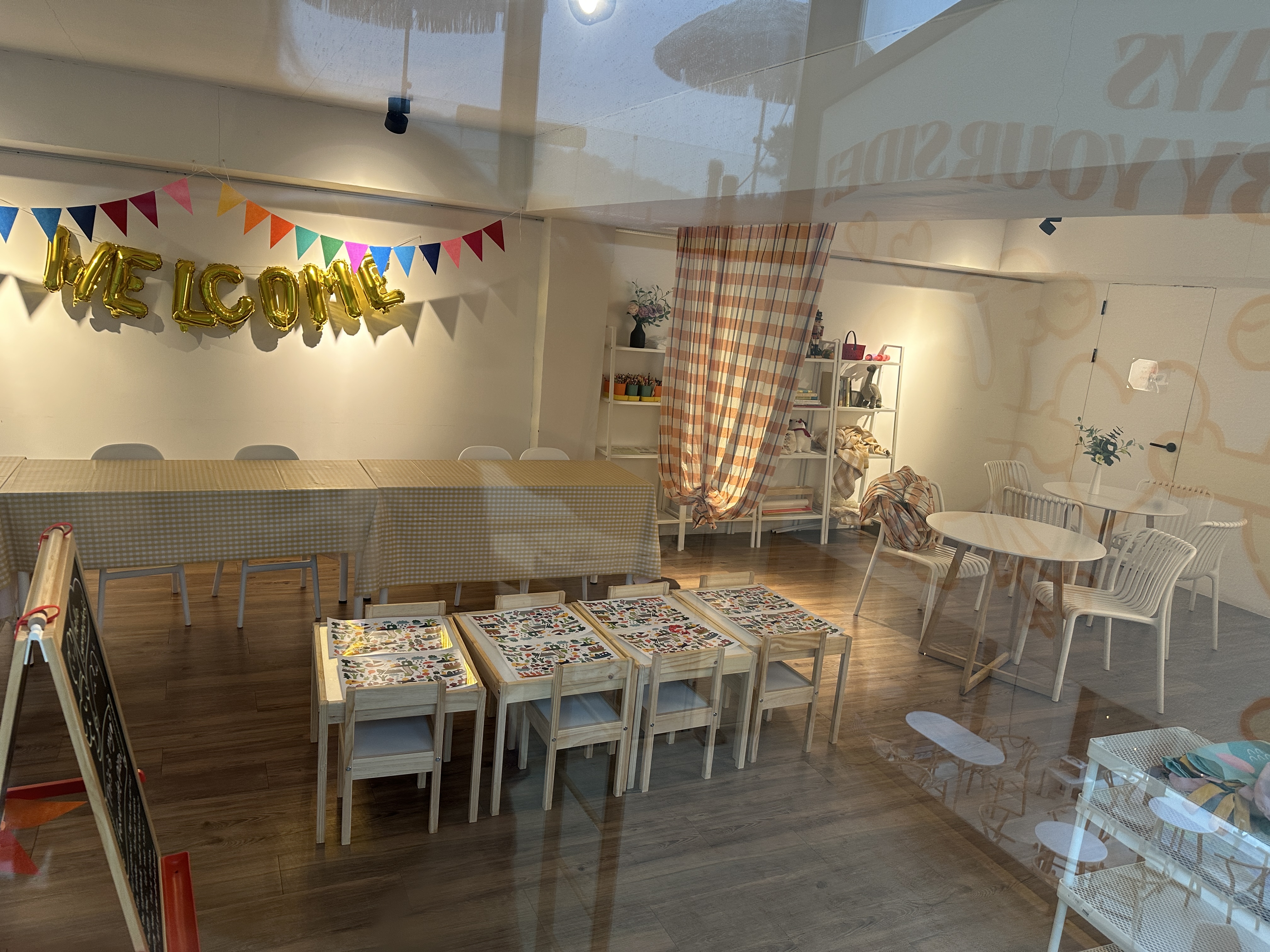 건물 정면에 직원 전용 출입구가 있으며, 카페로 내려가는 계단이 건물 왼쪽에 있습니다. 계단 벽에도 낙타 그림이 그려져 있어 모든 곳이 포토존입니다. 계단을 내려가면 마당 잔디에 놓인 빨간색 미니 자동차들이 눈에 띄었고, 넓은 마당에는 짚 파라솔과 캠핑용 테이블들이 많았습니다. 한옥 느낌의 별채도 있어 신발을 벗고 들어갈 수 있습니다. 야외 좌석이 많아 날씨가 좋을 때 방문하면 하루 종일 야외에서 시간을 보내기 좋습니다.