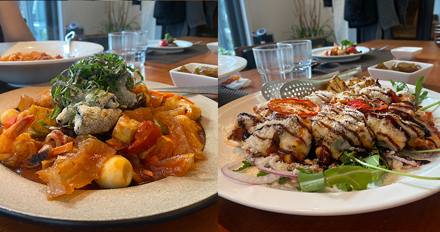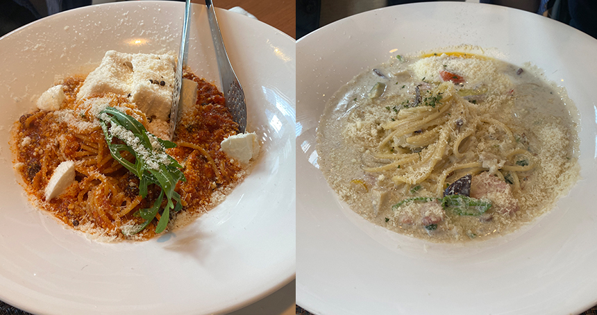 콩 듬뿍 토마토 라구 파스타는 라구가 들어간 파스타인데요. 라구 소스의 향을 위에 올려진 연두부가 잘 잡아주고요. 매우 부드럽습니다. 고사리가 들어간 나물 듬뿍 크림 파스타도 새로웠습니다.