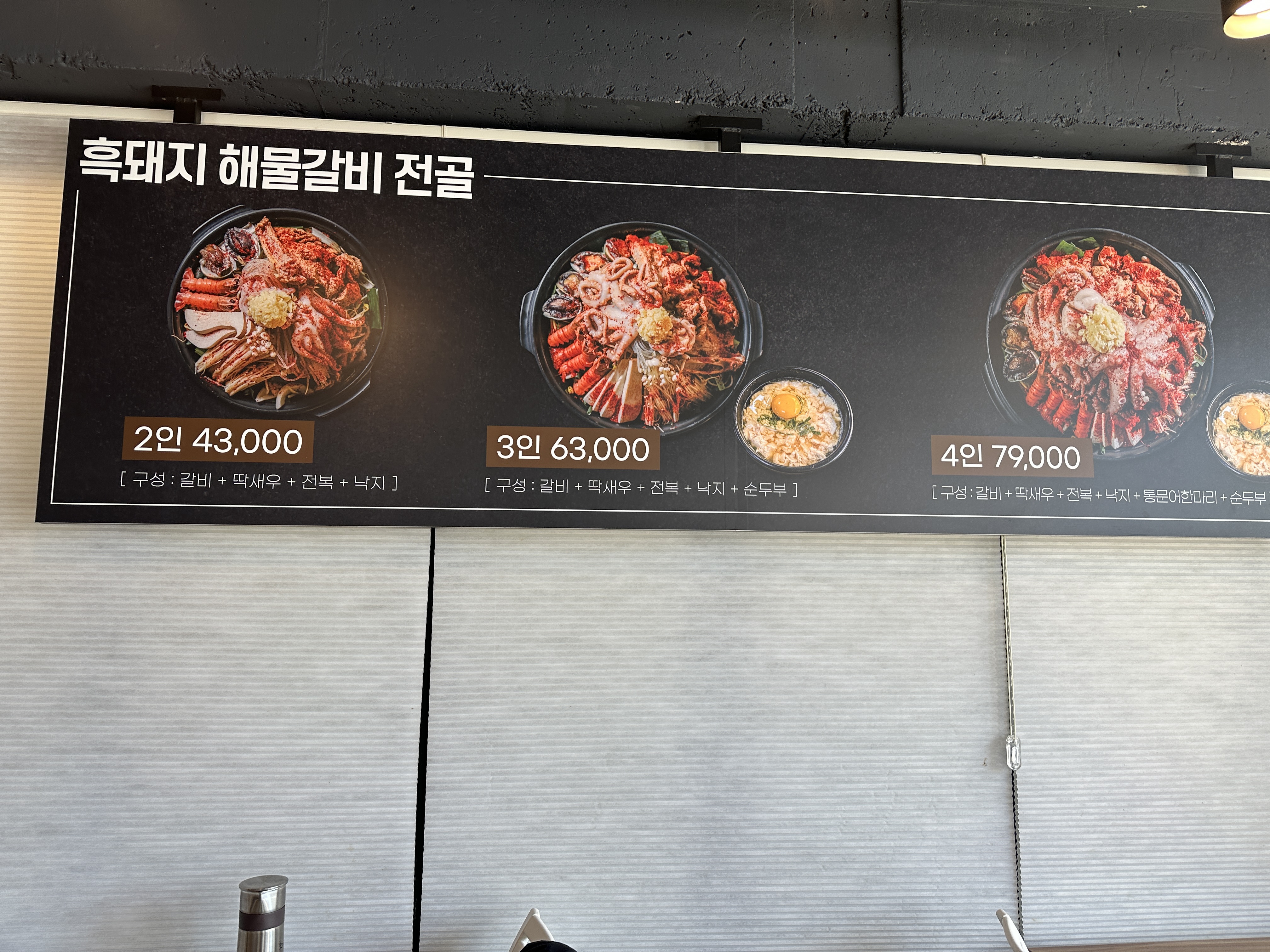 이곳은 흑돼지해물갈비전골을 전문으로 하는 식당인데요,