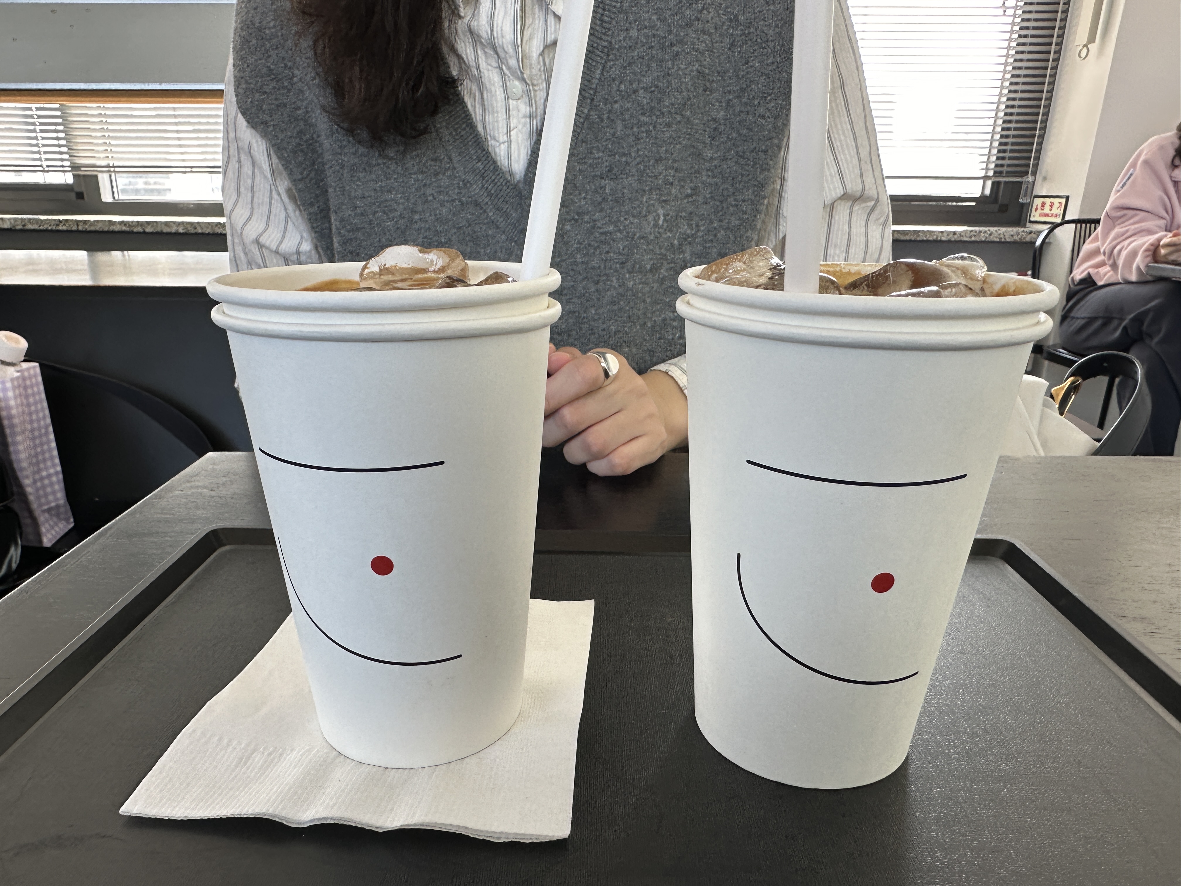 음료는 종이재질의 테이크아웃 컵에 주었다. 음료를 마시는데 뭔가 예상한 맛이 아니었다. 호지라테를 주문했는데 그냥 라테랑 맛이 똑같았다. 세 모금쯤 마시다가 아무래도 이상해서 카운터에 가서 물어봤다. 음료가 잘못 나온 것이었다. 바로 다시 만들어 주셨다.