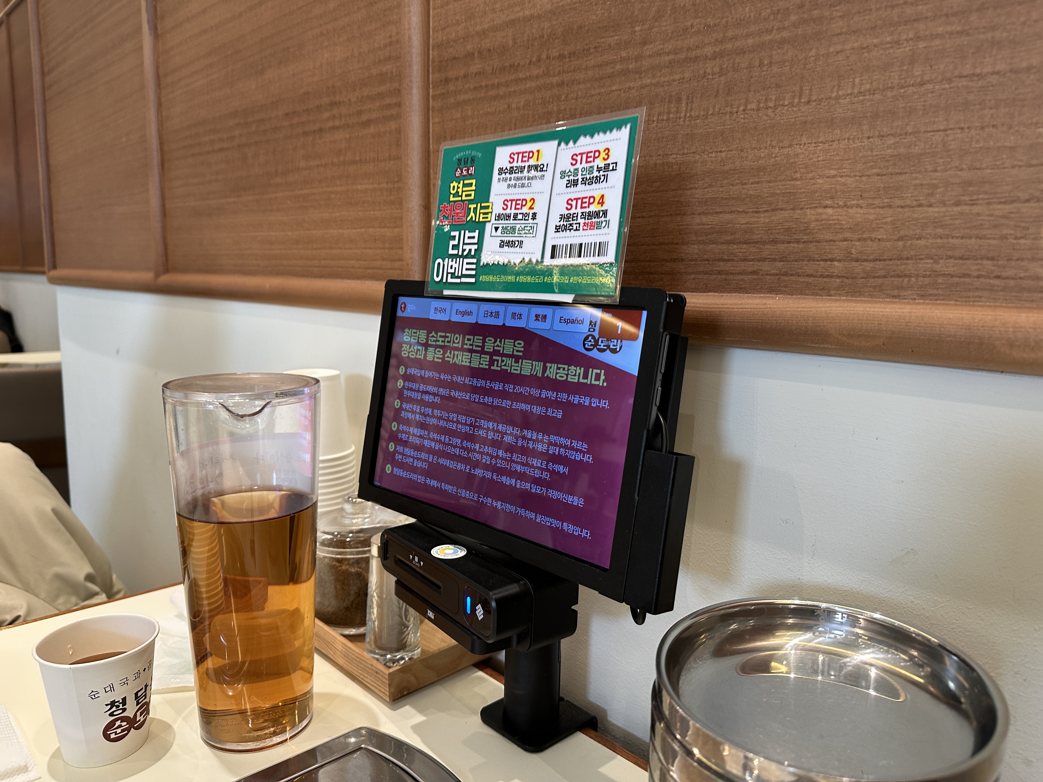 테이블마다 키오스크가 있어서 자리에서 주문하고 결제까지 하면 된다.