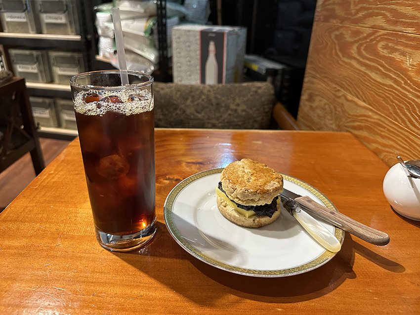 커피에서 향긋한 맛이 나요! 깔끔하고 상쾌한 맛이 나는 커피를 오랜만에 마셨어요. 연한 콜드부루 같기도 하고요. 커피가 맛있다는 느낌이 들어서 신기했습니다. 함께 주문한 스콘엔 빵과 빵사이에 블루베리쨈과 버터가 듬뿍 발라져 있어서 달달했답니다. 내돈내산이에요!