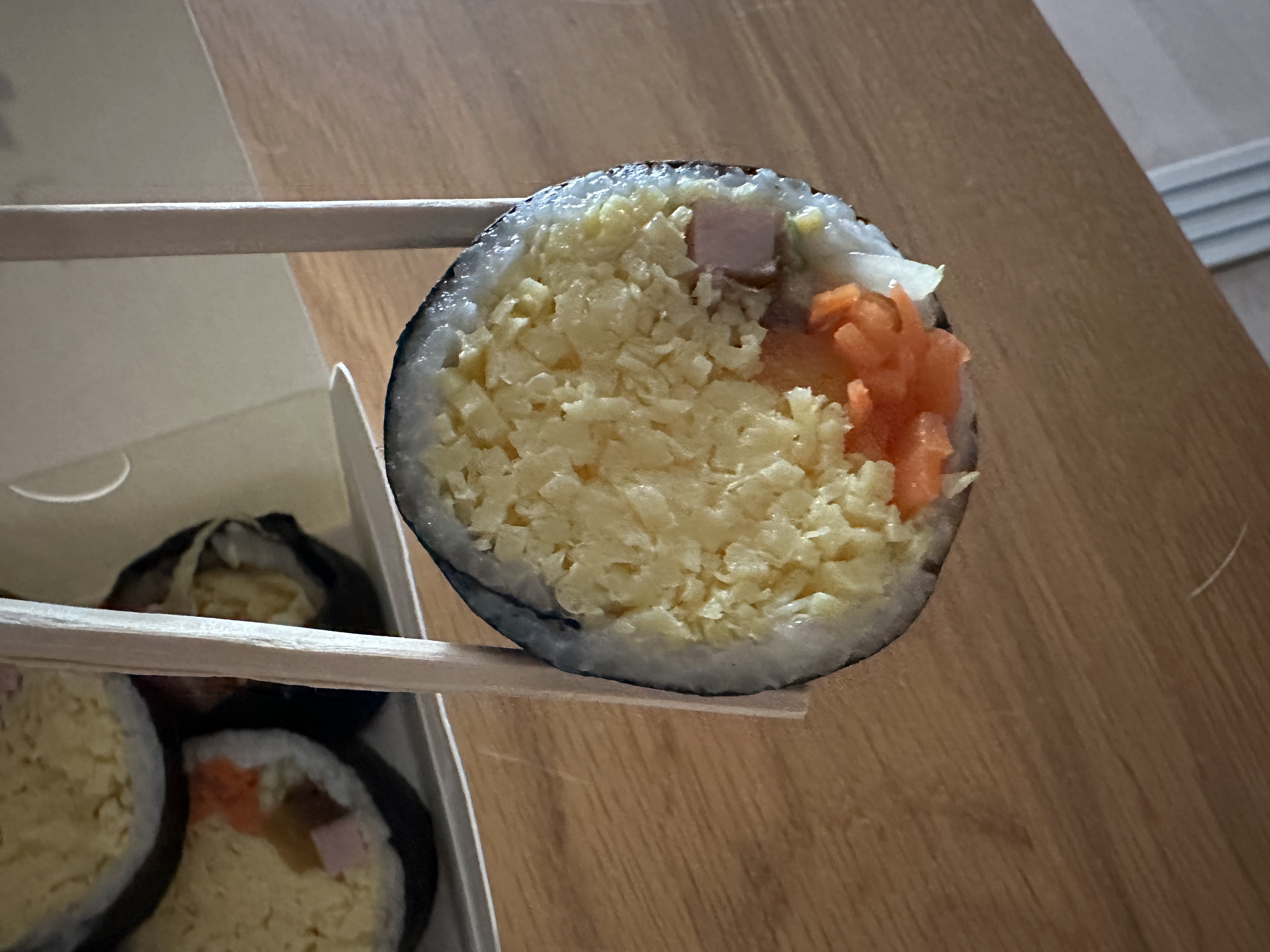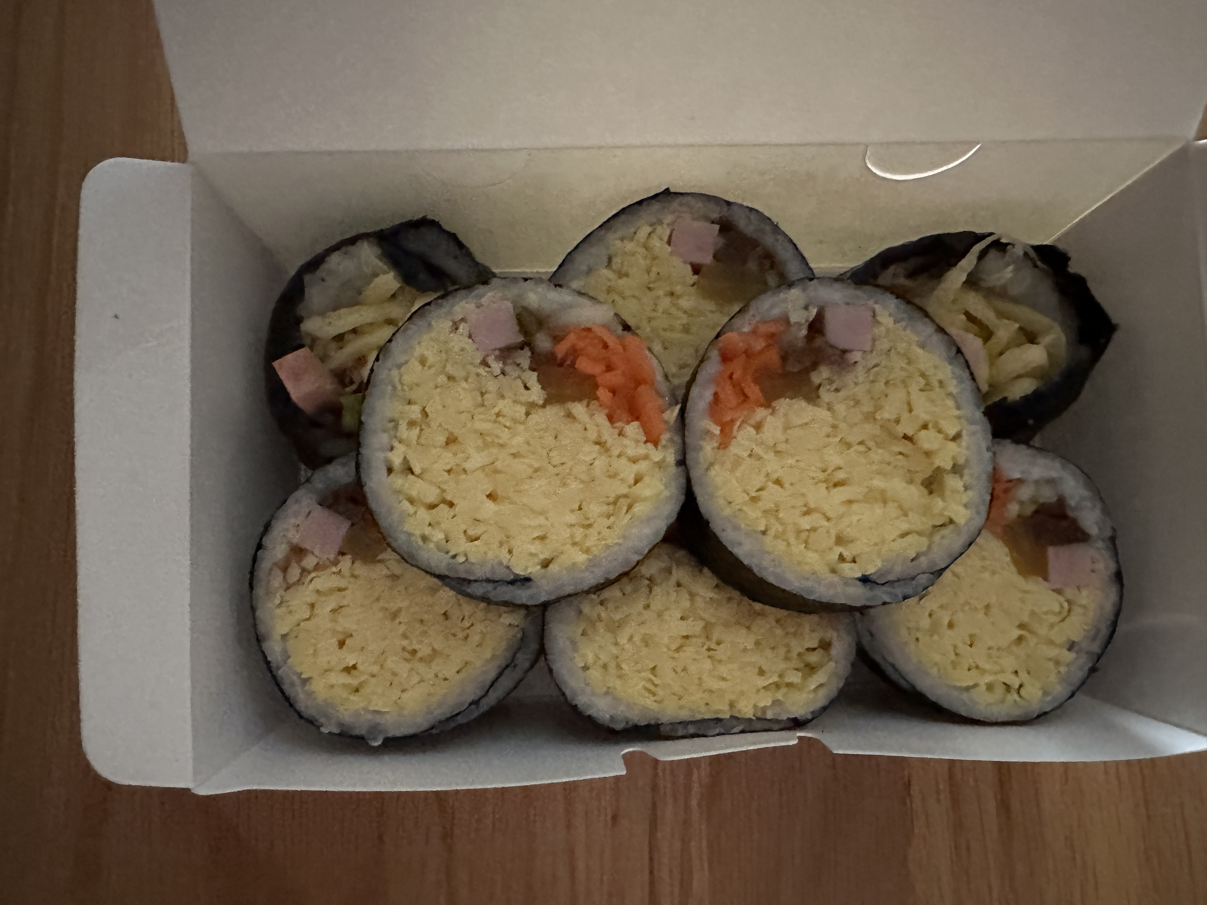 집에 도착해 박스를 열었다. 둥글둥글 밥은 아주적게, 계란은 푸짐하게 들어가 정갈하게 말려있었다.