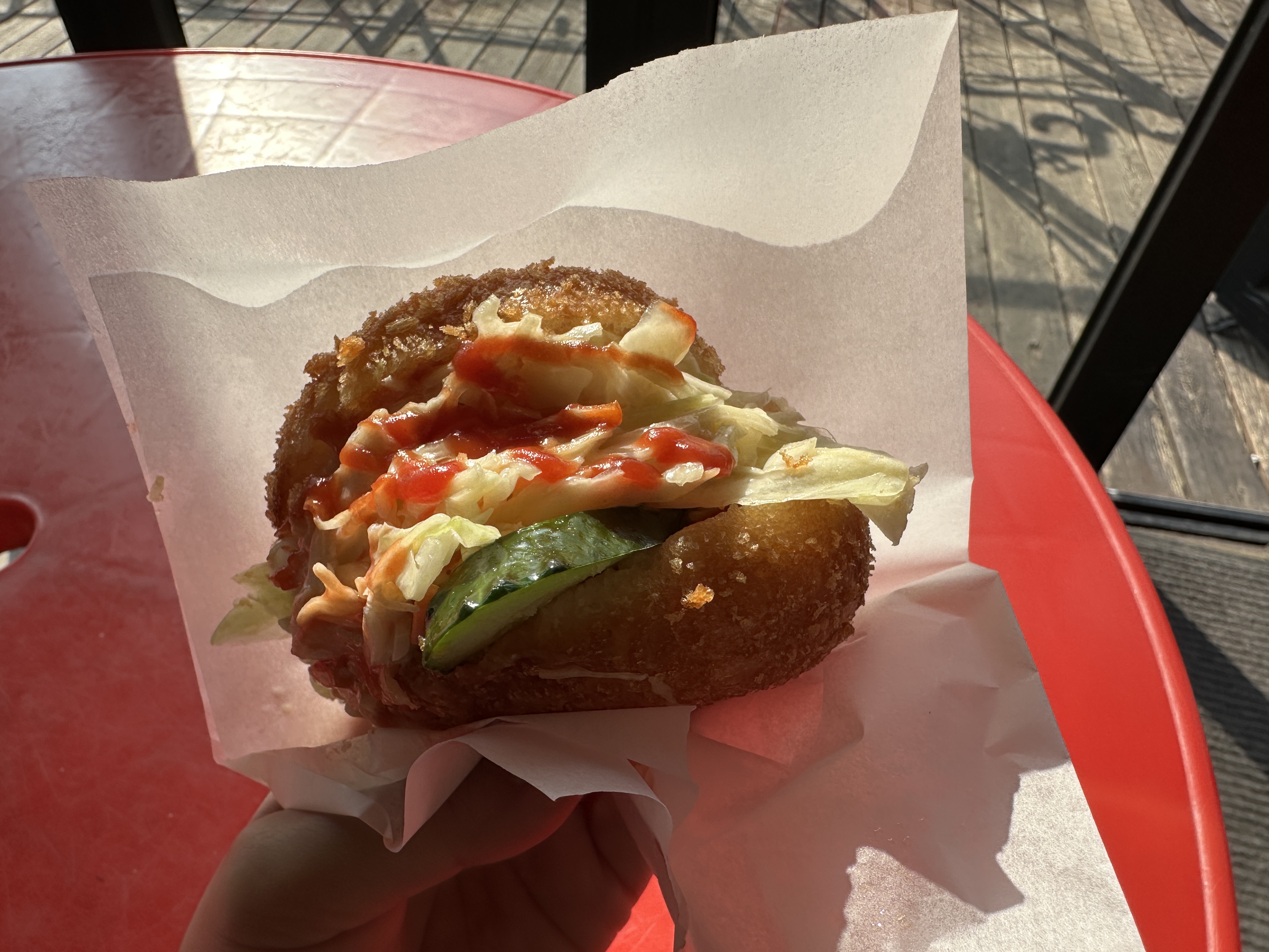 도나스를 받아서 뒤쪽 먹는 곳으로 갔어요.