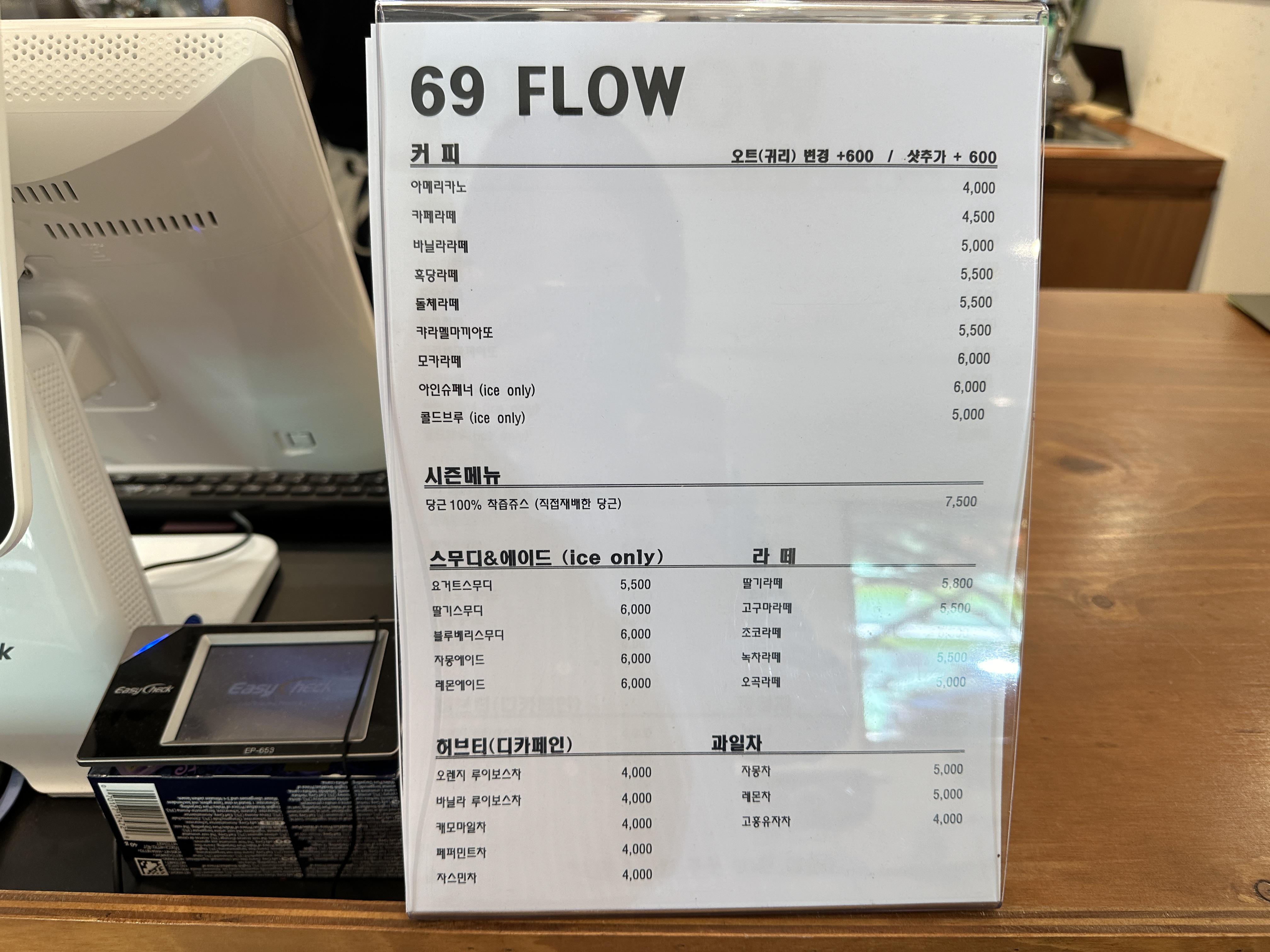 프랜차이즈 카페보다는 로컬 카페를 선호한다. 얼마 전 친구가 알려준 카페에 다녀왔다. 하남 덕풍동에 위치한 69 FLOW다. 5호선 하남 풍산역 3번 출구에서 도보 5분이고 이마트 하남점과 가깝다. 주차장도 꽤 넓어서 자동차로 방문하기도 편하다. 휴무인 매주 월요일을 제외한 모든 날, 오전 10시부터 오후 18시까지 운영한다. (워라벨을 확실히 지키는 듯)