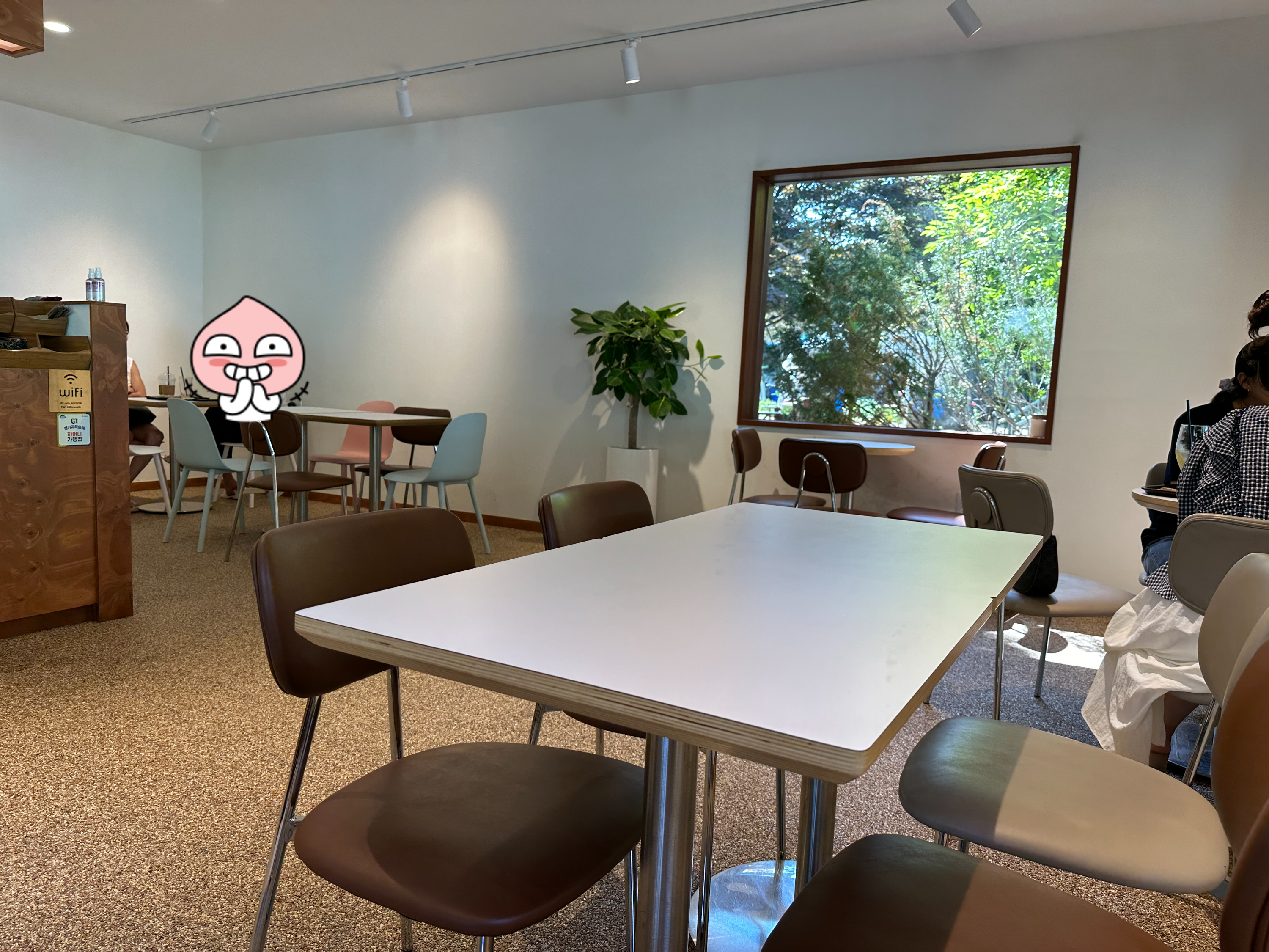 내부에는 6개 정도의 테이블이 있고 야외에도 앉을 수 있는 좌석이 마련되어있다. 야외석은 식물들이 자연스럽게 만들어주는 그늘에 가려져 한여름에도 시원할 것 같았다.