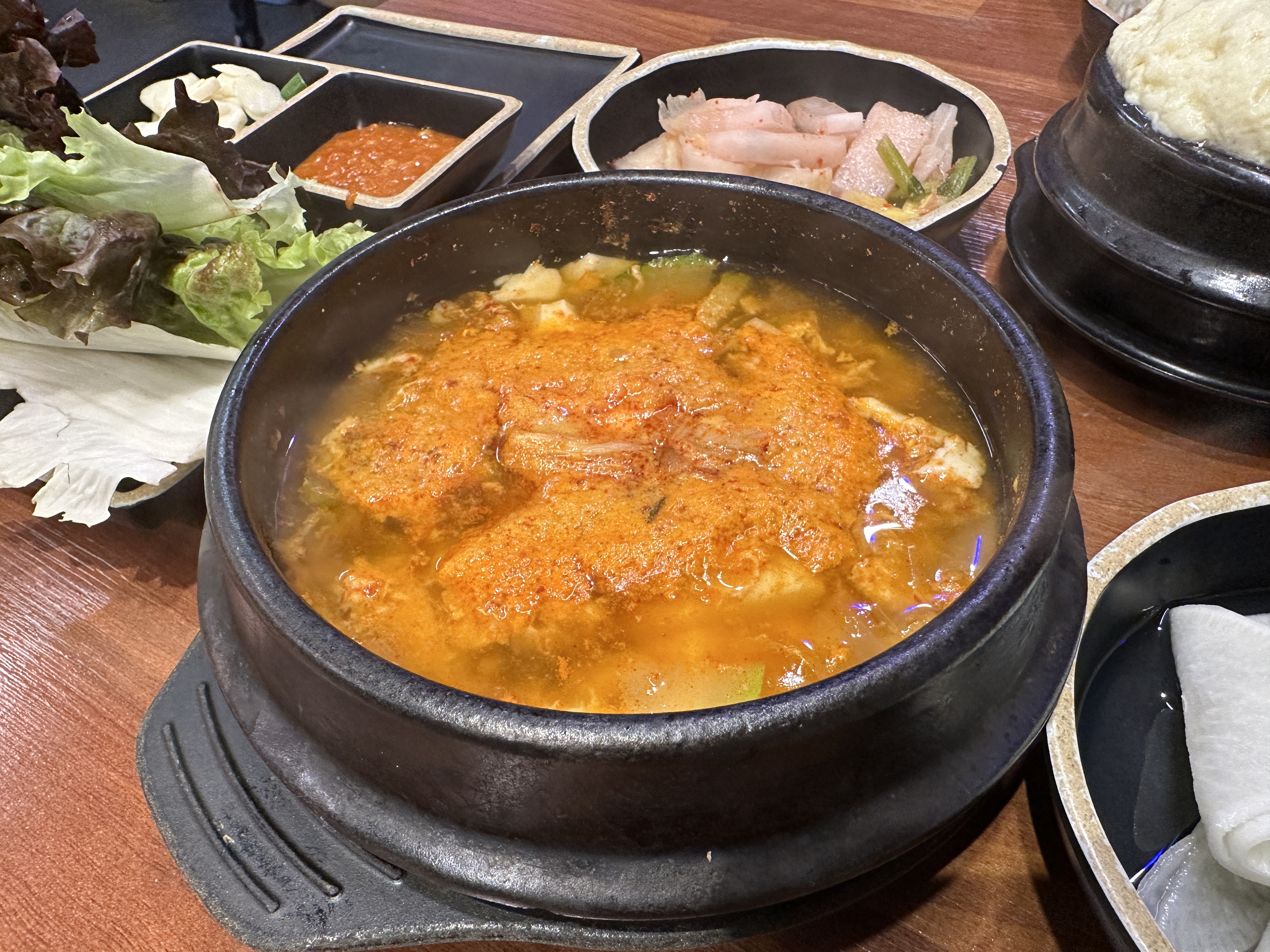 막국수와 쌈, 계란찜, 순두부탕을 주문한 지 5분만에 가져다 주었다.