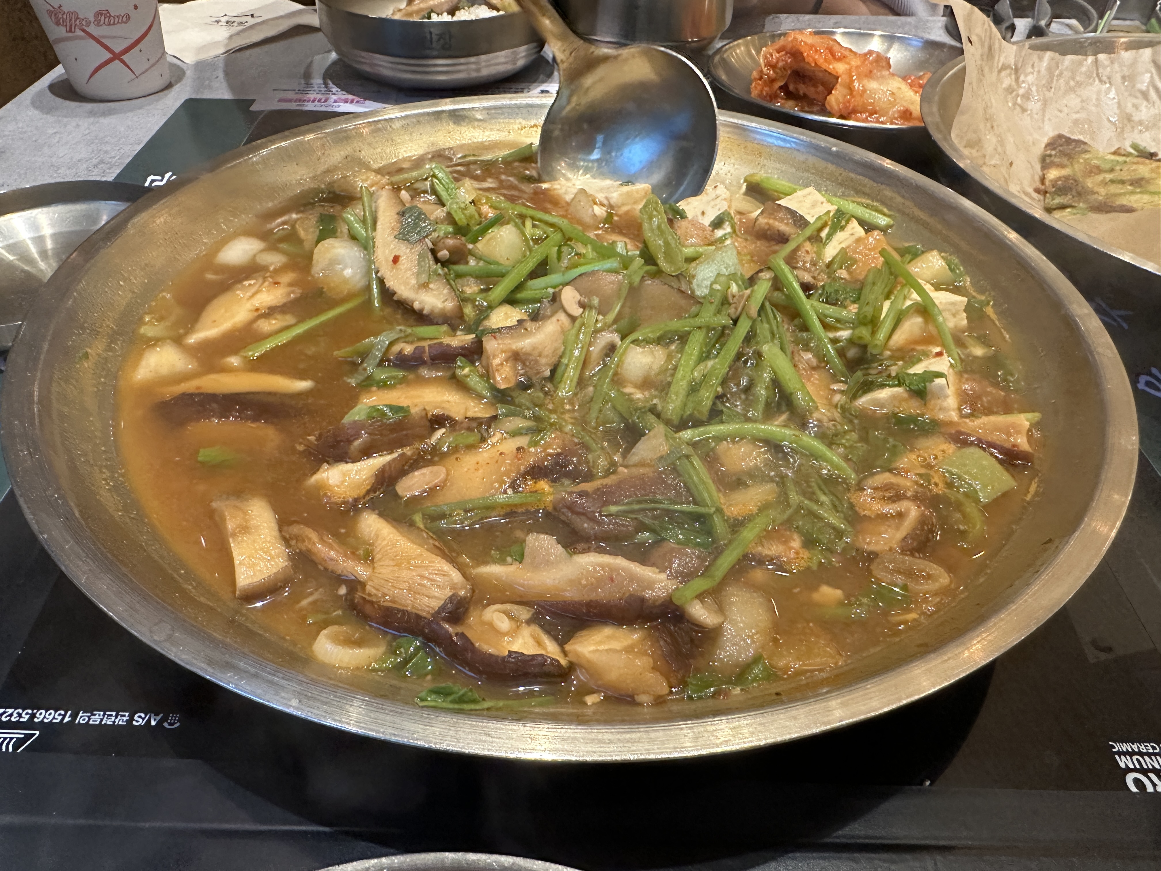 표고버섯된장전골은 전에 먹었던 소고기삼겹된장전골 만큼이나 양이 많았다. 표고버섯이 지인짜 많았다. 먹어도 먹어도 사라지지 않는 느낌? 역시 된장 국물이 구수하고 담백하고 건강한 맛이었다. 배가 부른데도 억지로 밥 한공기를 다 먹었다.