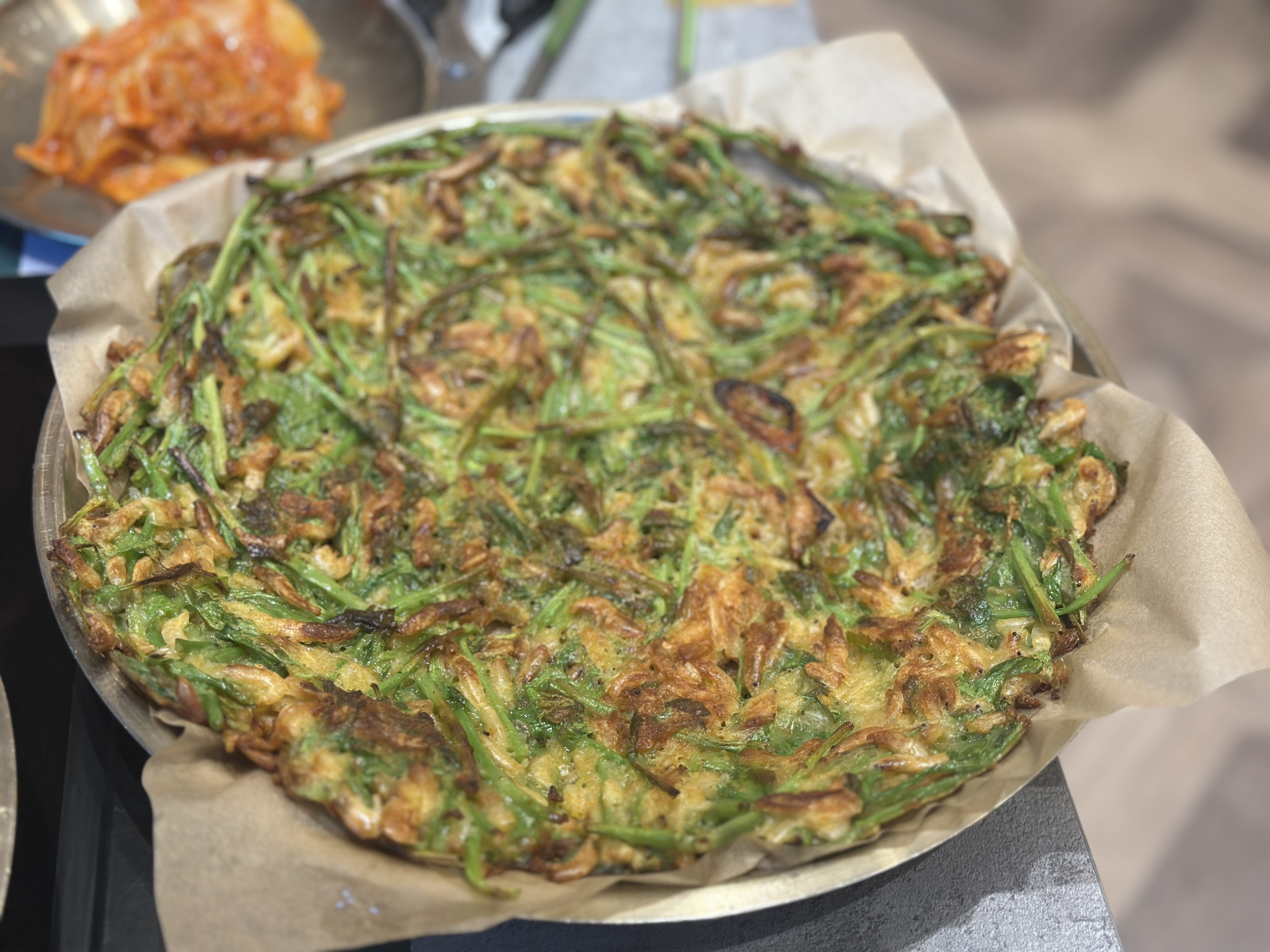 보리새우전은 미나리와 보리새우의 조화가 어마어마했다. 거의 반죽없이 두 재료를 섞어서 부친 느낌? 살짝 뻑뻑한 느낌도 있는데 굉장히 고소하고 바삭했다. 사이즈도 컸다.