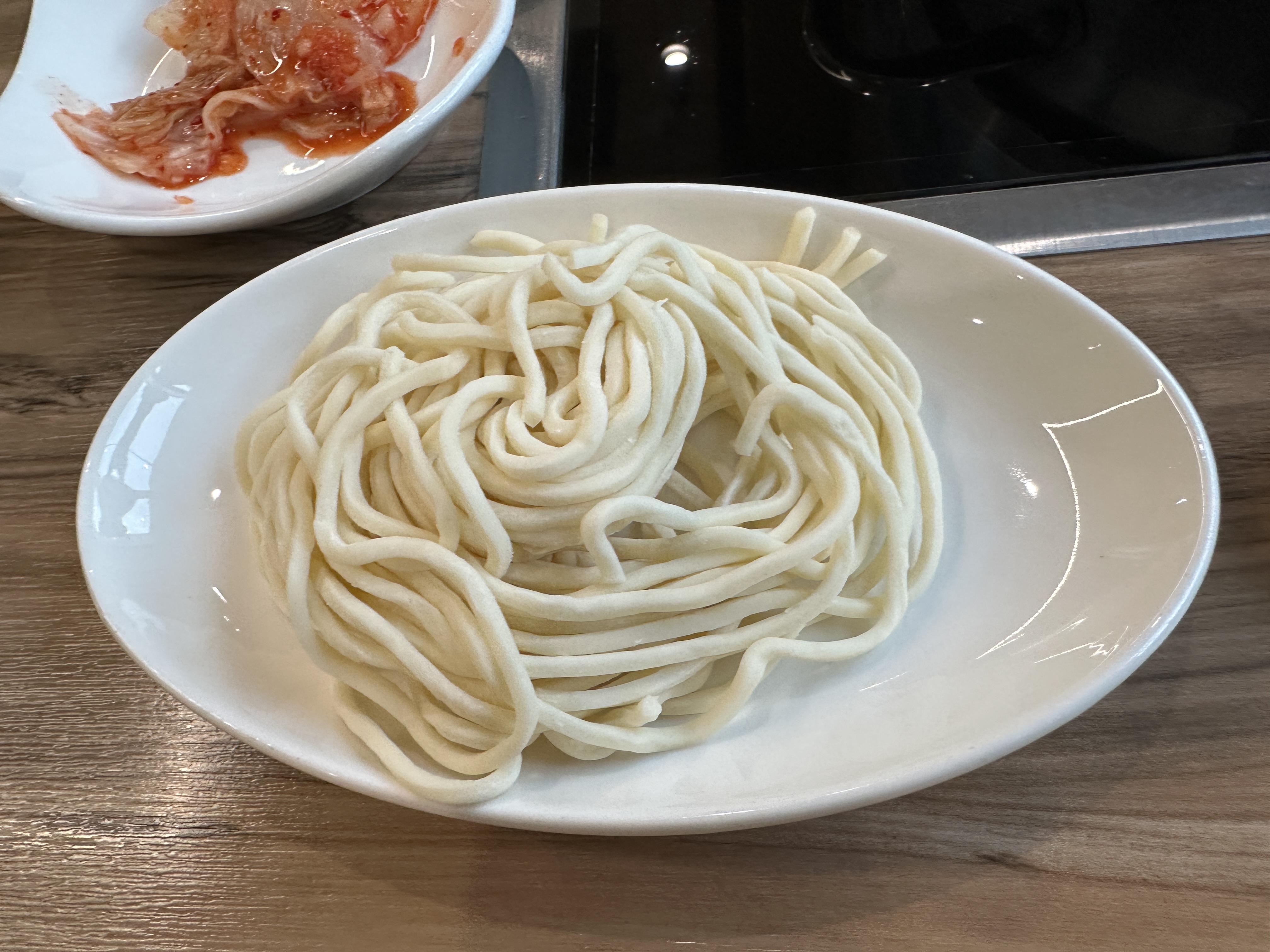 전골 먹고 난 후 육수를 살짝 리필해서 칼국수 투하! 면발이 탱글탱글하니 좋았어요.