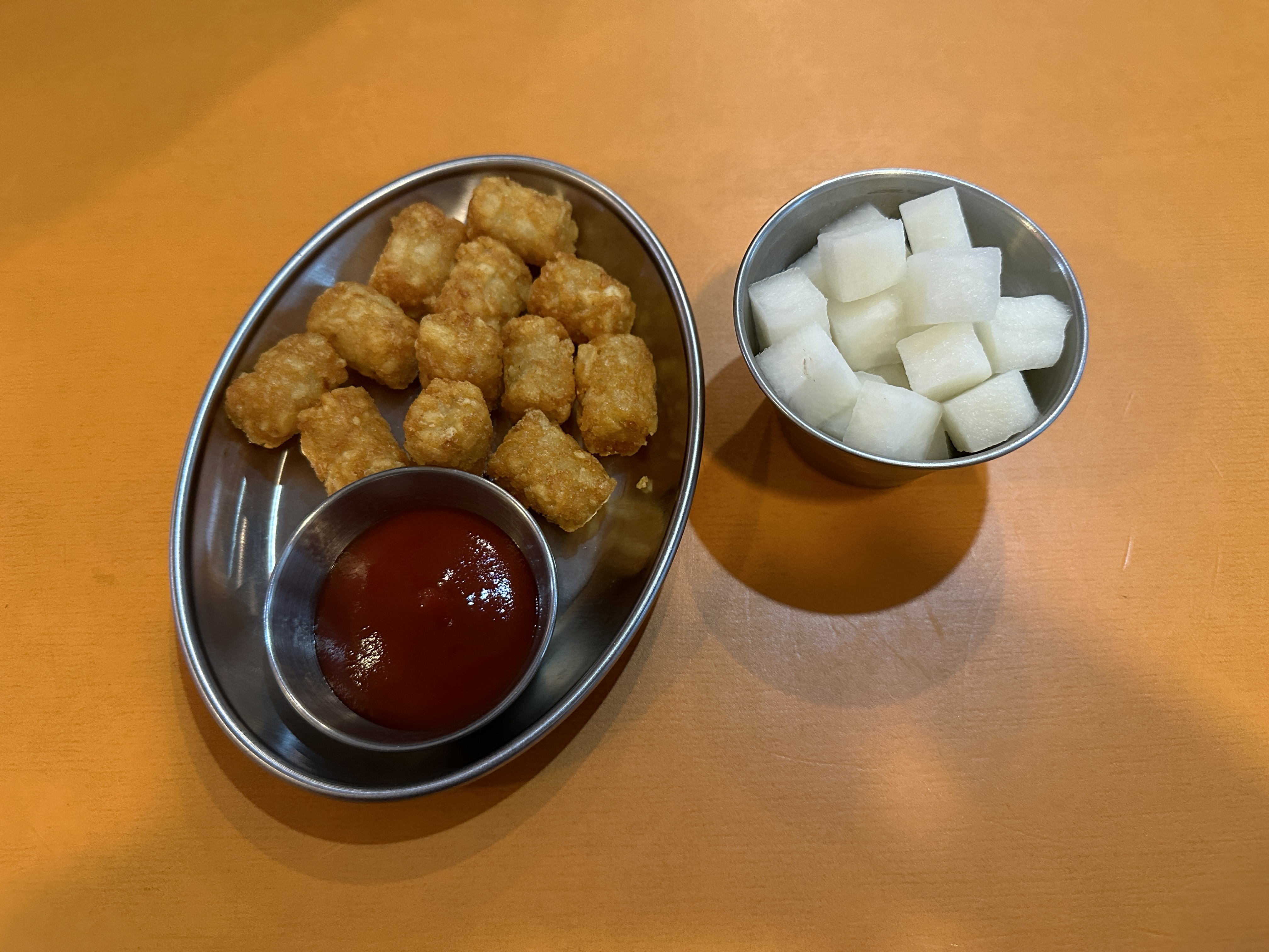 업무가 일찍 끝나 여유있던 날, 친구 동네로 갔다. 둥둥 치킨에서 만나기로 했다. 치킨집은 규모가 크지 않았다. 아파트 단지 안에 있는 작은 치킨집이었다.