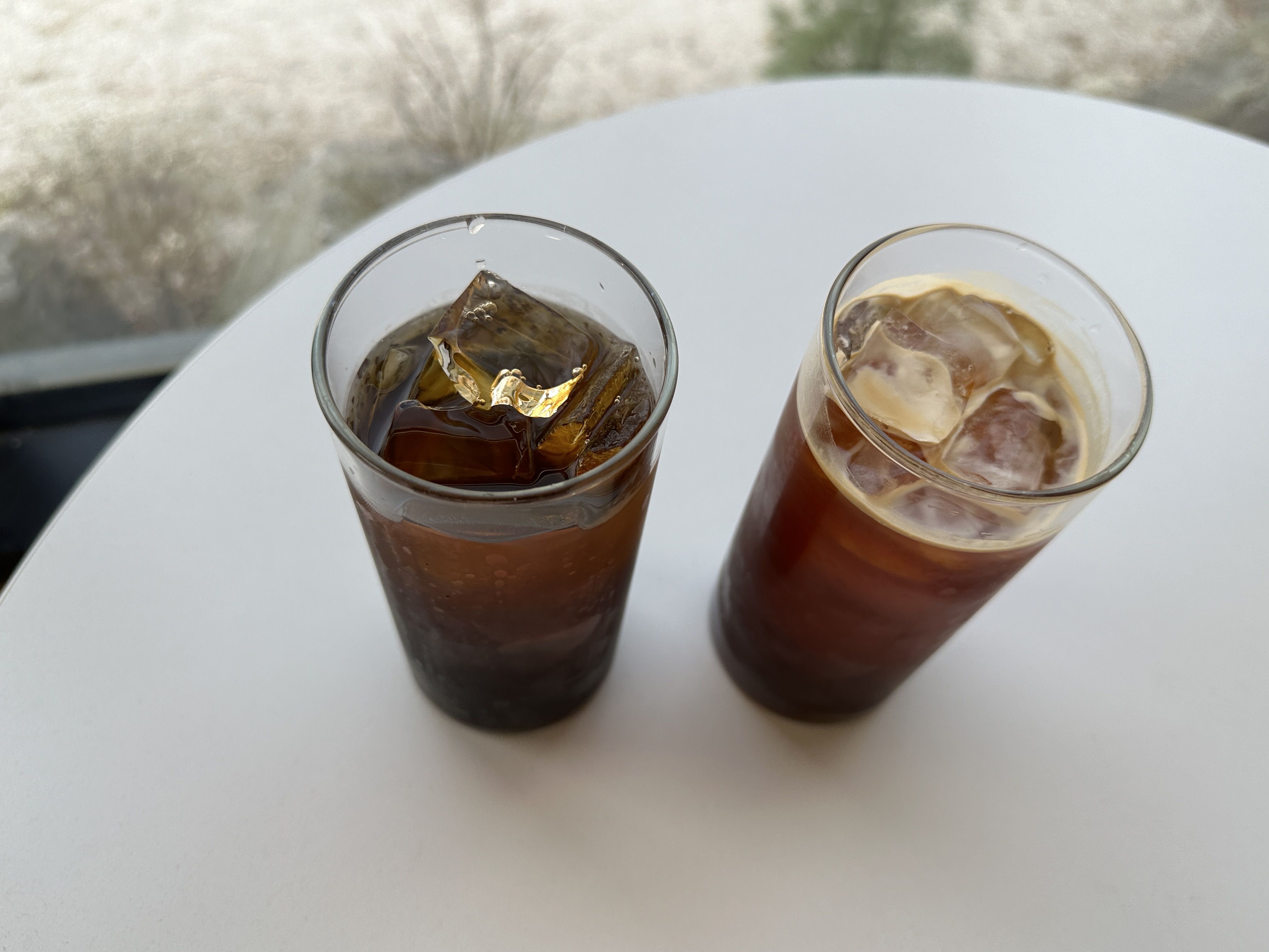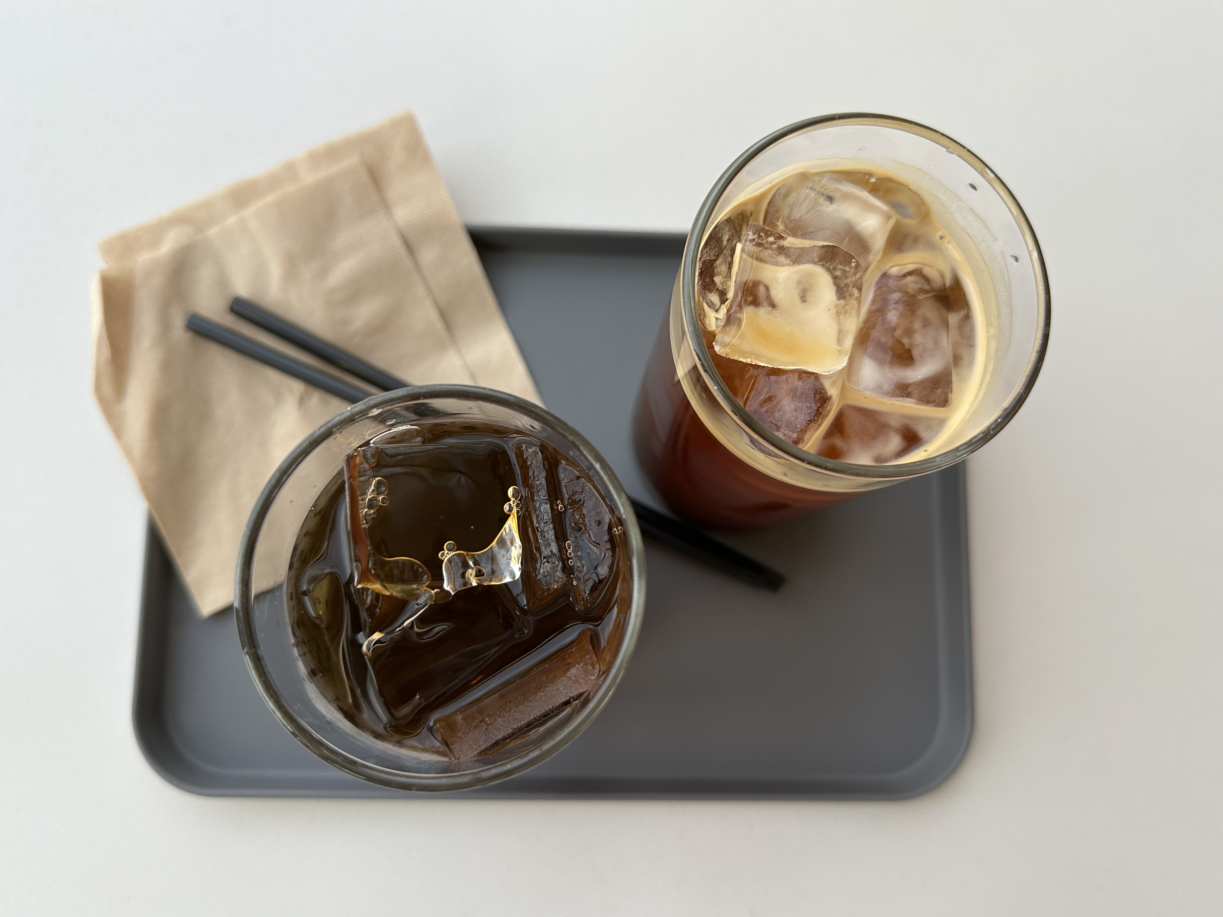 방문한 날, 날씨가 조금 쌀쌀해 2층 실내에 앉기로 했다. 루프탑 구경을 하고 오니 주문한 음료가 나와있었다. 나는 디카페인으로 마시기 위해 더치 커피를, 친구는 아이스 아메리카노를 주문했다. 음료 색이 확연히 달라 누가 주문한 것인지 바로 구분 가능했다. 더치커피는 색이 무척 검으면서도 투명했다. 약간 시큼한 것이 딱 알맞은 농도였다. 창가에 앉아 책을 좀 읽으려고 펼쳤는데 하늘이 예뻐서 자꾸 창밖만 보게 되었다.