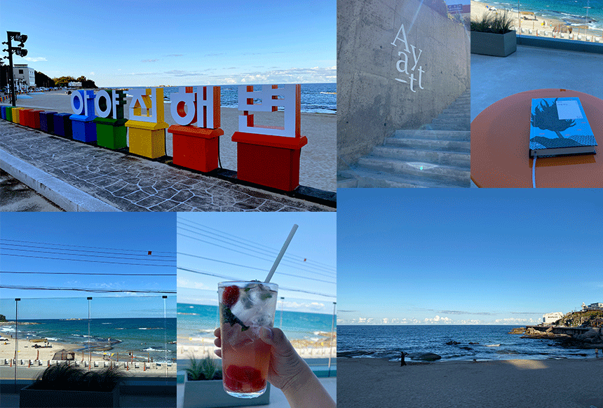 아야트커피는 아야진해변 표식이 딱 보이는 2층에 있습니다. 바다가 눈앞에 살랑거리는 테라스에 앉아있으면 기분 최고입니다. 저는 책을 읽으려고 가져갔었는데 두 시간 넘게 바다만 보다 왔어요 ㅎㅎ고성 바다 색은 정말 어느 해변보다 진하고 푸른 것 같아요. 뭉게뭉게 핀 구름도 평화롭고 사랑스러운 모습이었습니다.